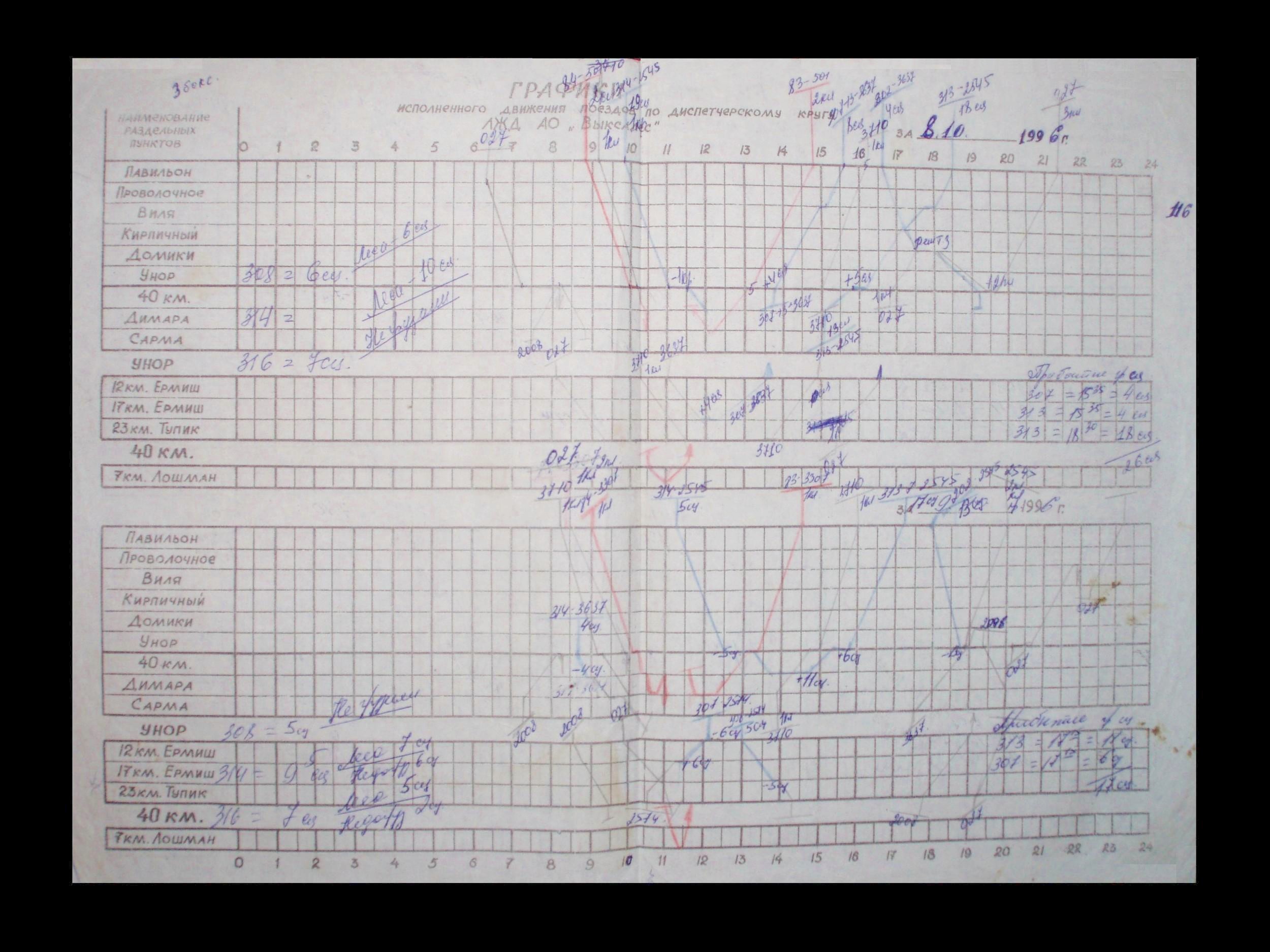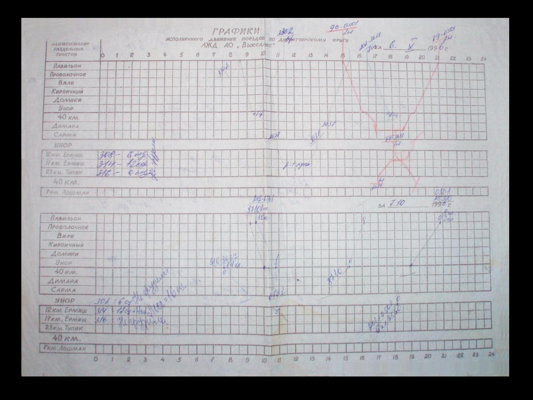 График исполненного движения поездов за 6 октября 1996 года. Получен мной в августе 1997 года.