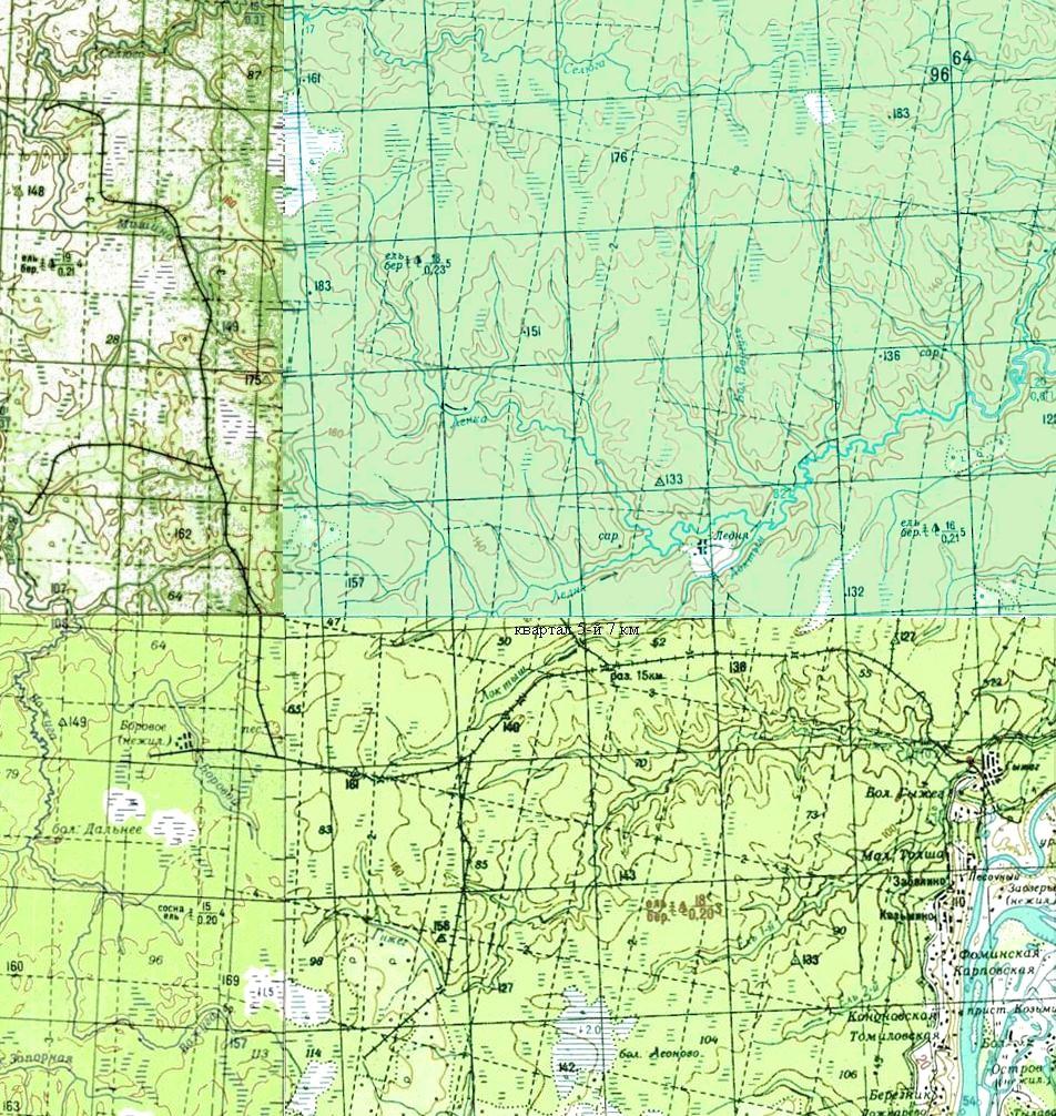 Увеличенный фрагмент топографической карты масштаба 1:200 000, изданной в 1986 году