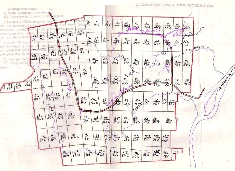 «Схематическая карта дороги и лесосырьевой базы» (из «паспорта Козьминской узкоколейной железной дороги»).