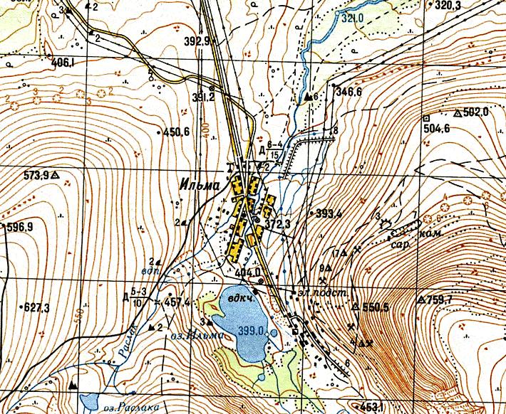 Показанный на карте посёлок Ильма не существует с 1970-х годов.