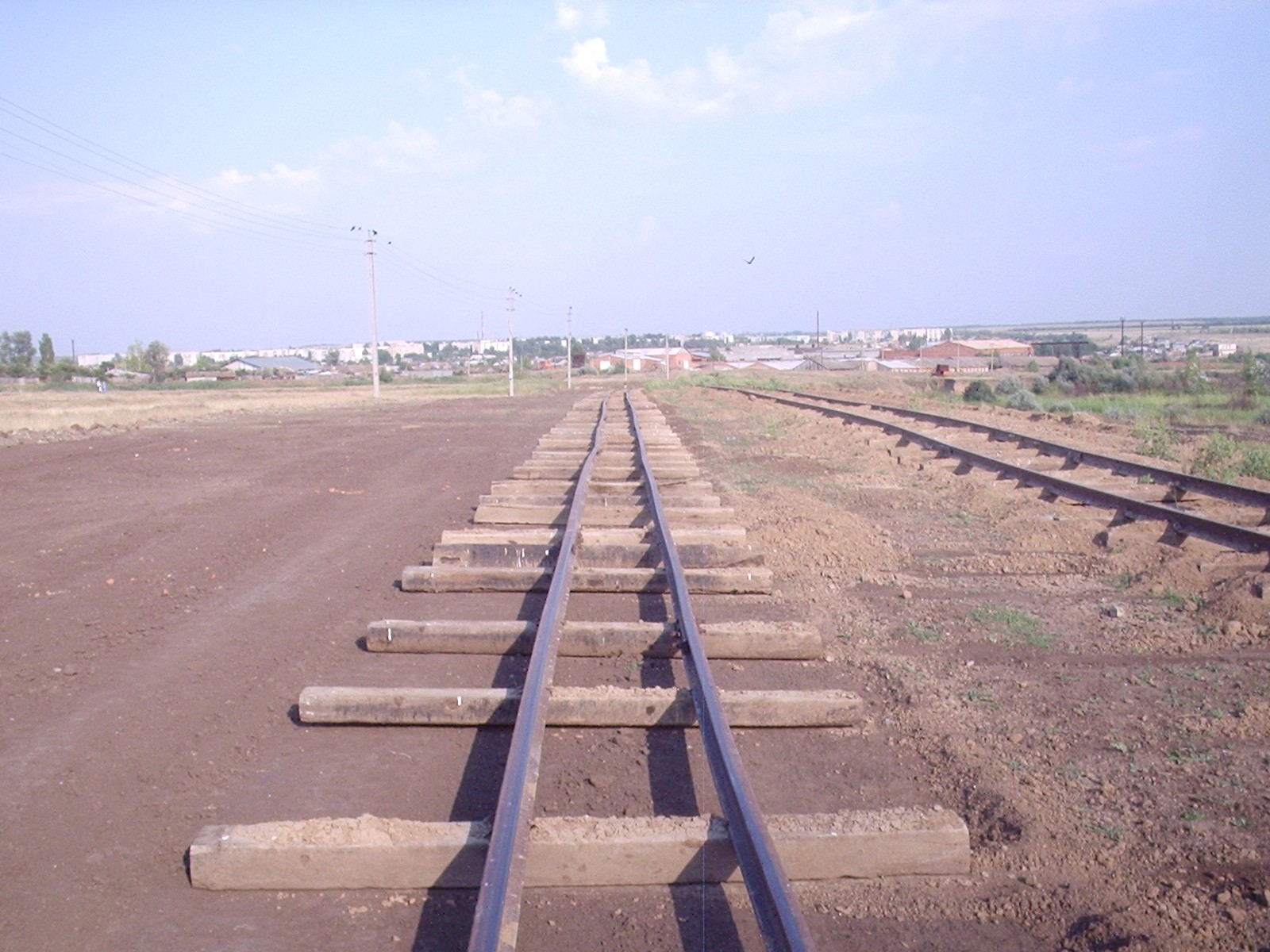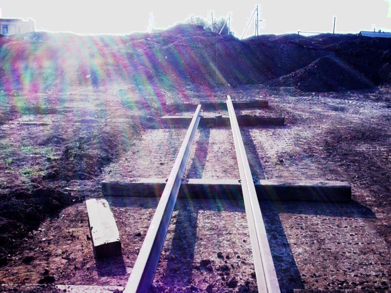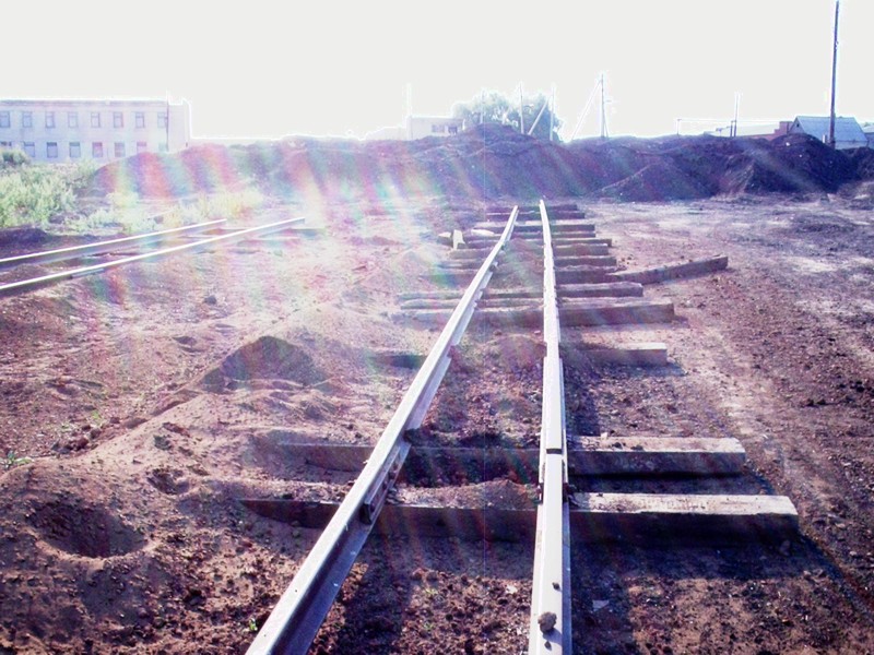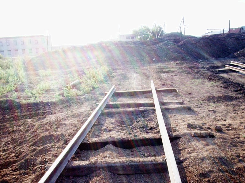 Вид из той же точки в противоположном направлении. Впереди - конец рельсового пути широкой колеи.