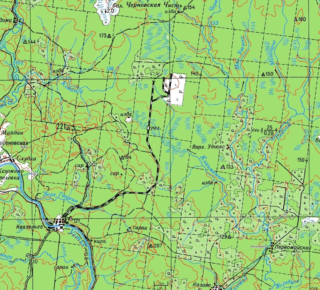 Узкоколейная железная дорога на топографической карте масштаба 1:200 000, изданной в 196? году.