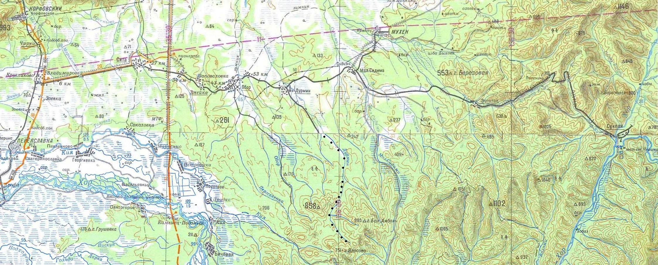 участок Золотая — Сукпай, но отсутствовала почти вся Орочёнская ветвь.