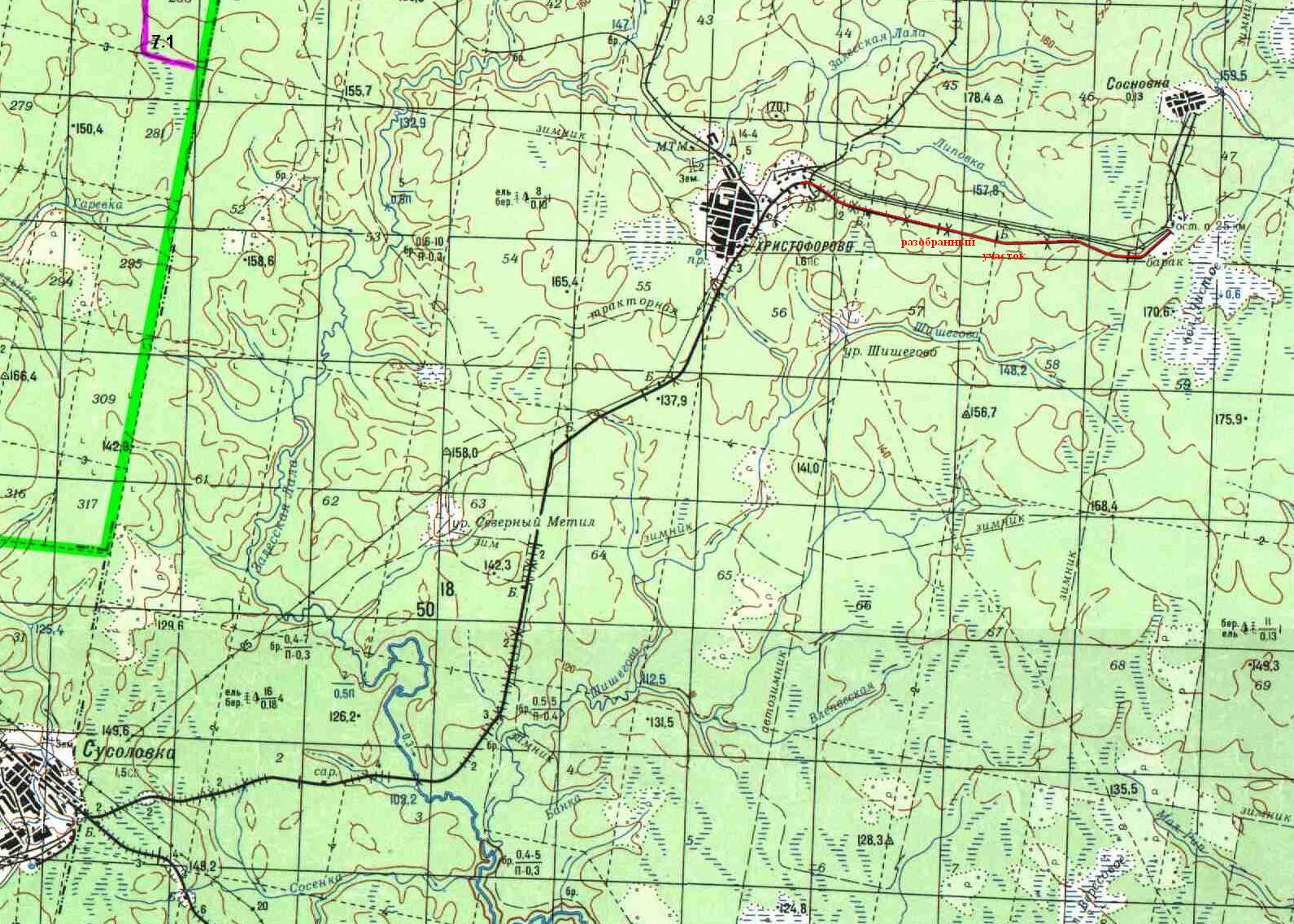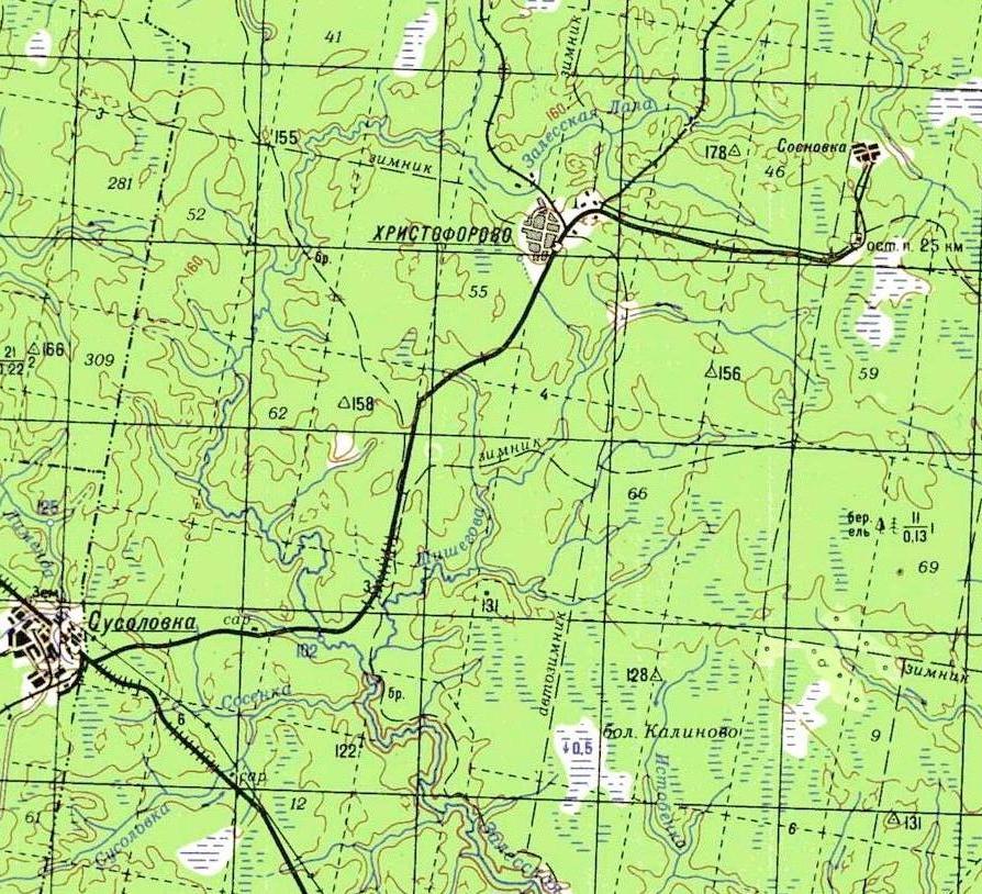 ЖЕЛЕЗНОДОРОЖНАЯ ЛИНИЯ СУСОЛОВКА — ХРИСТОФОРОВО ТОПОГРАФИЧЕСКИЕ КАРТЫ