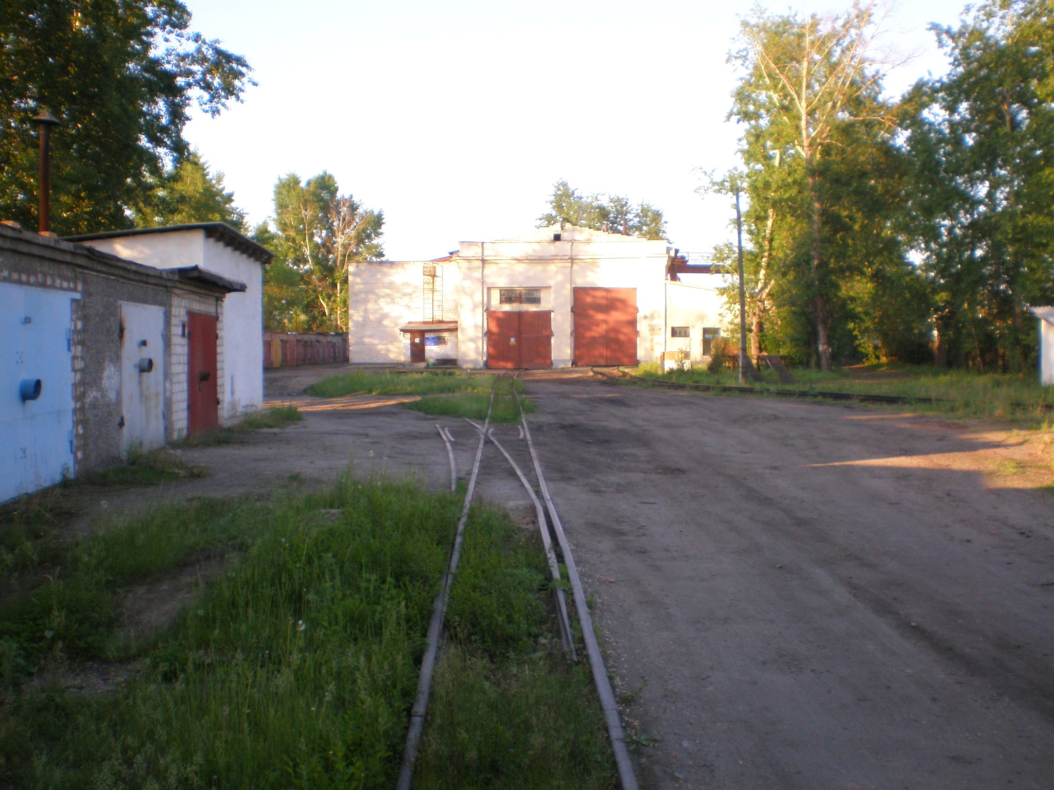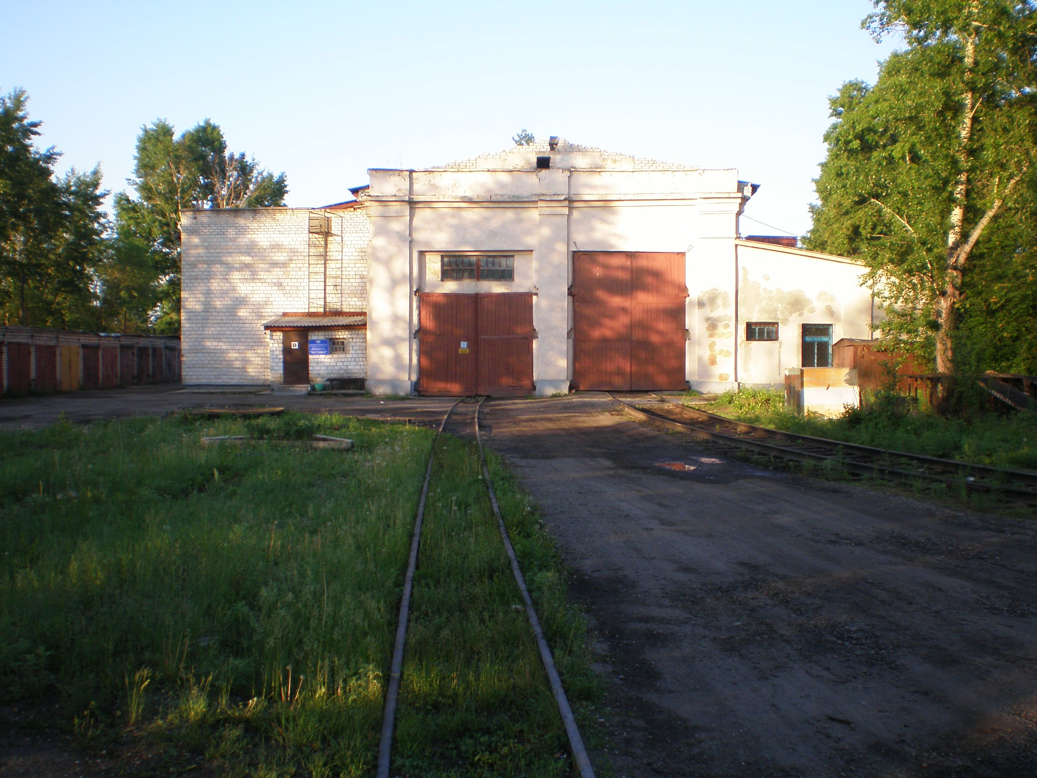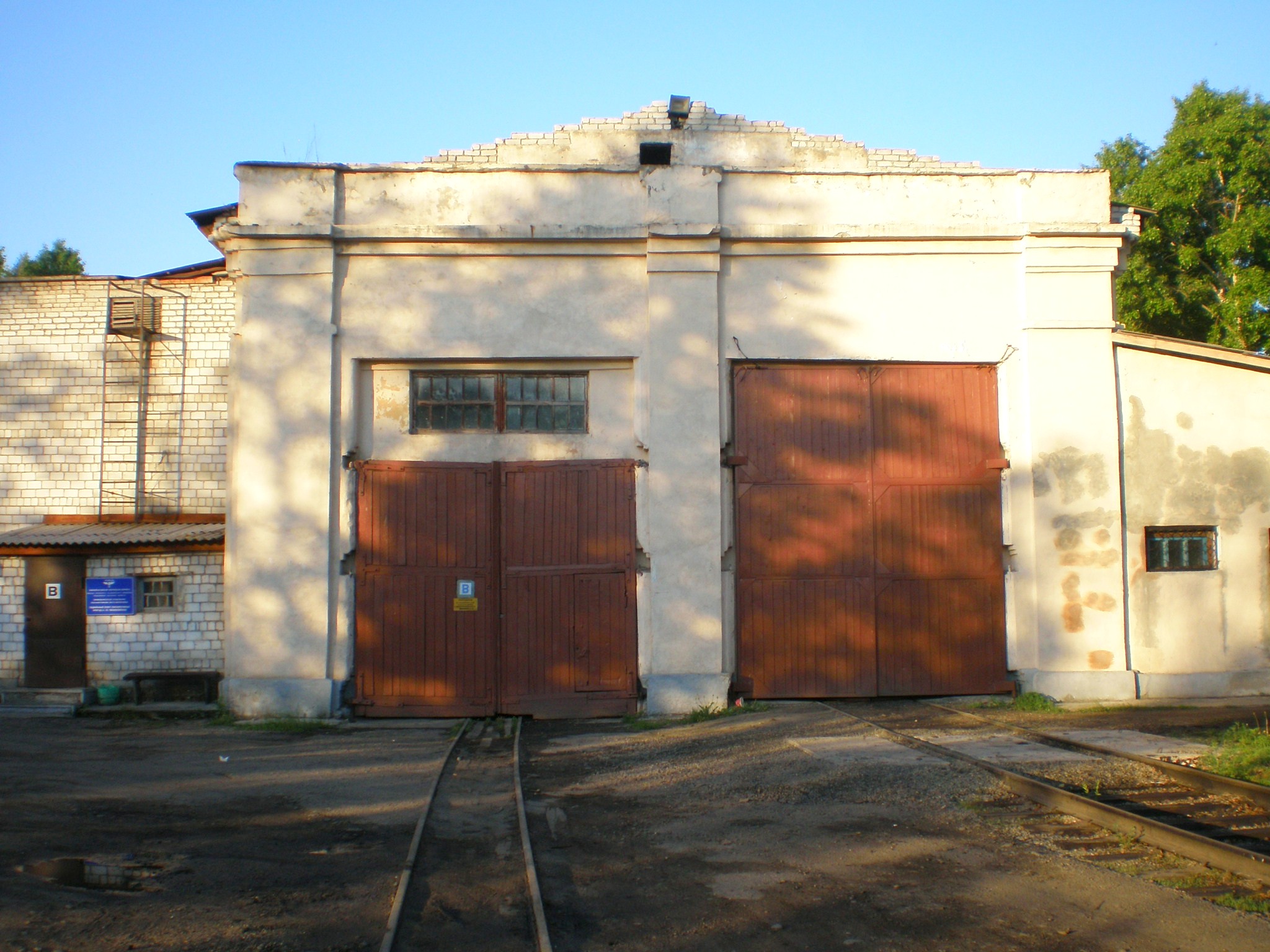Вид на депо (справа — путь широкой колеи, слева — путь узкой колеи).