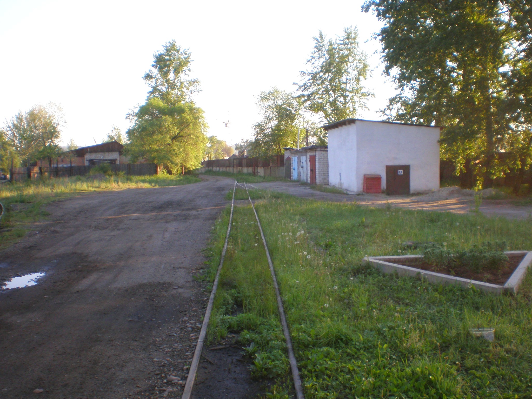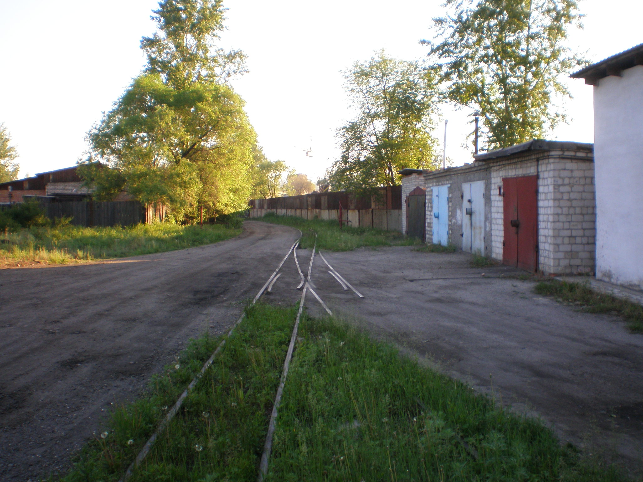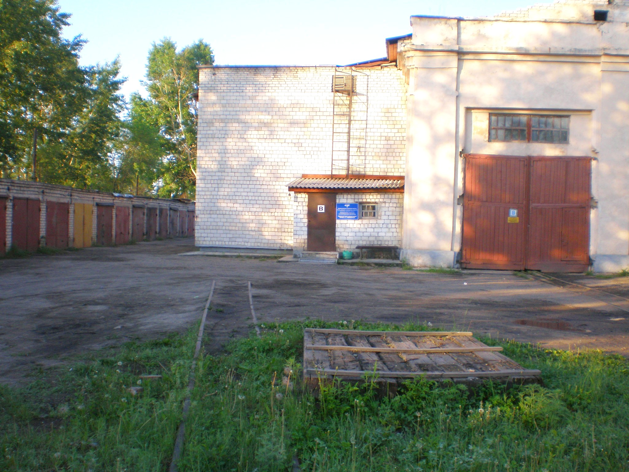 Вид на депо (справа — путь широкой колеи, слева — путь узкой колеи).