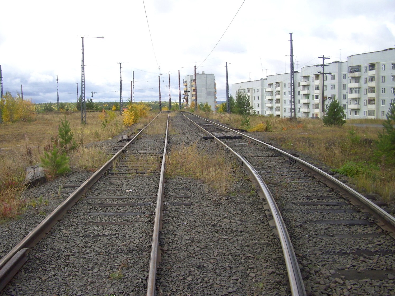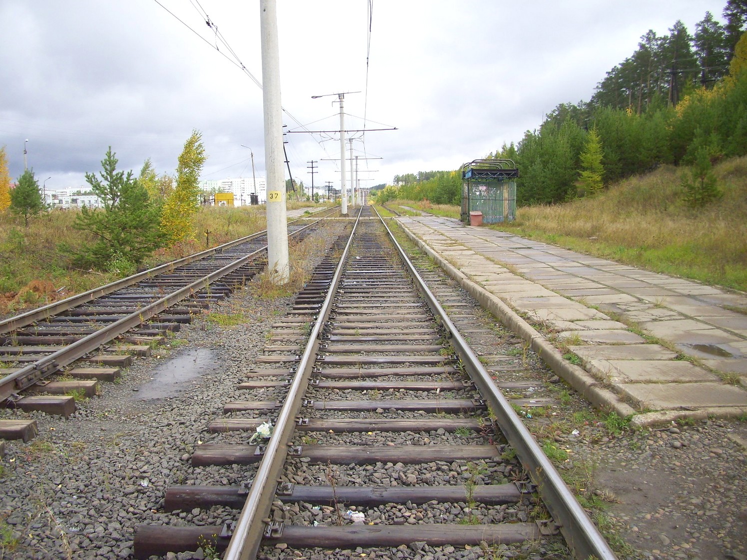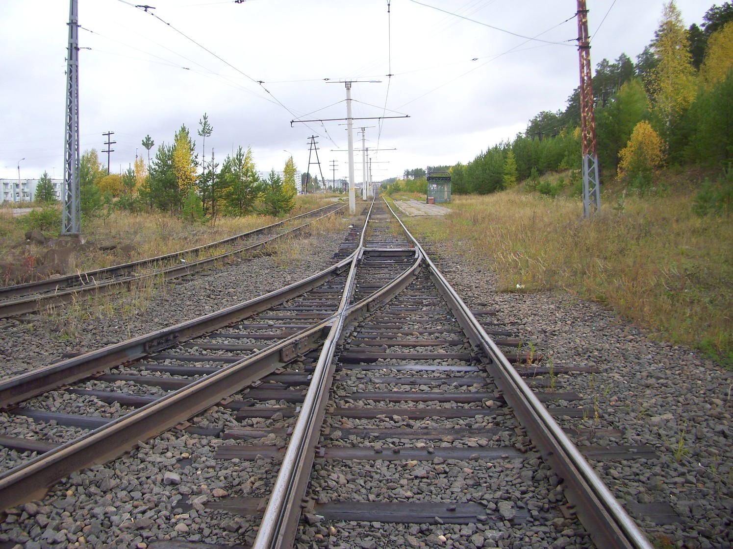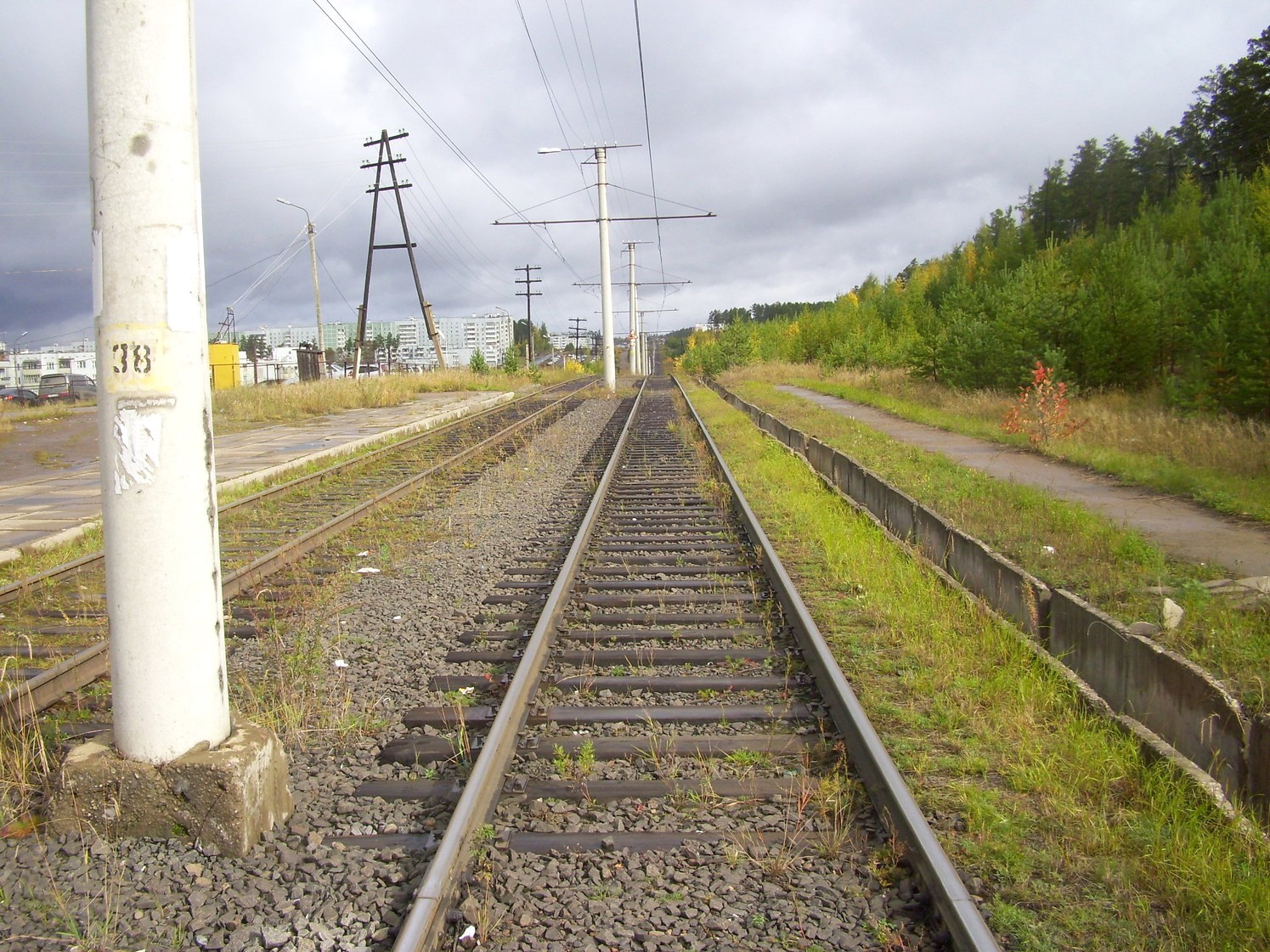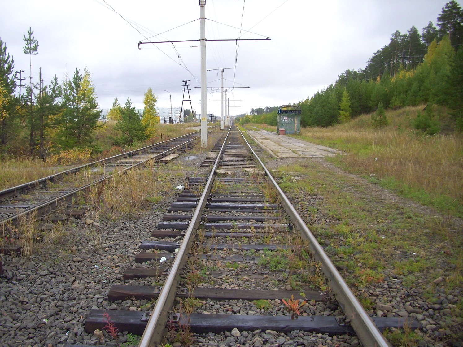 Впереди — станция «Целлюлозный завод». Вид в южном направлении.