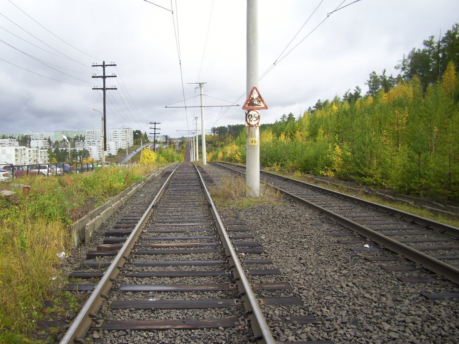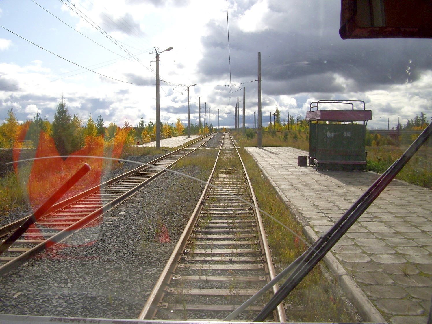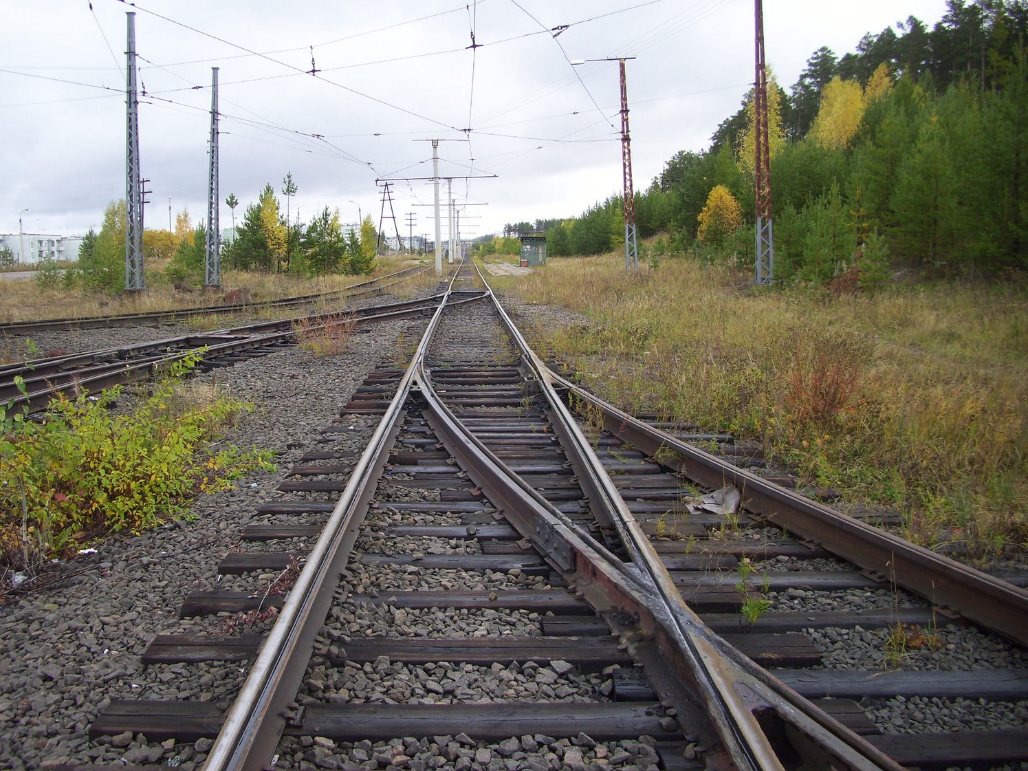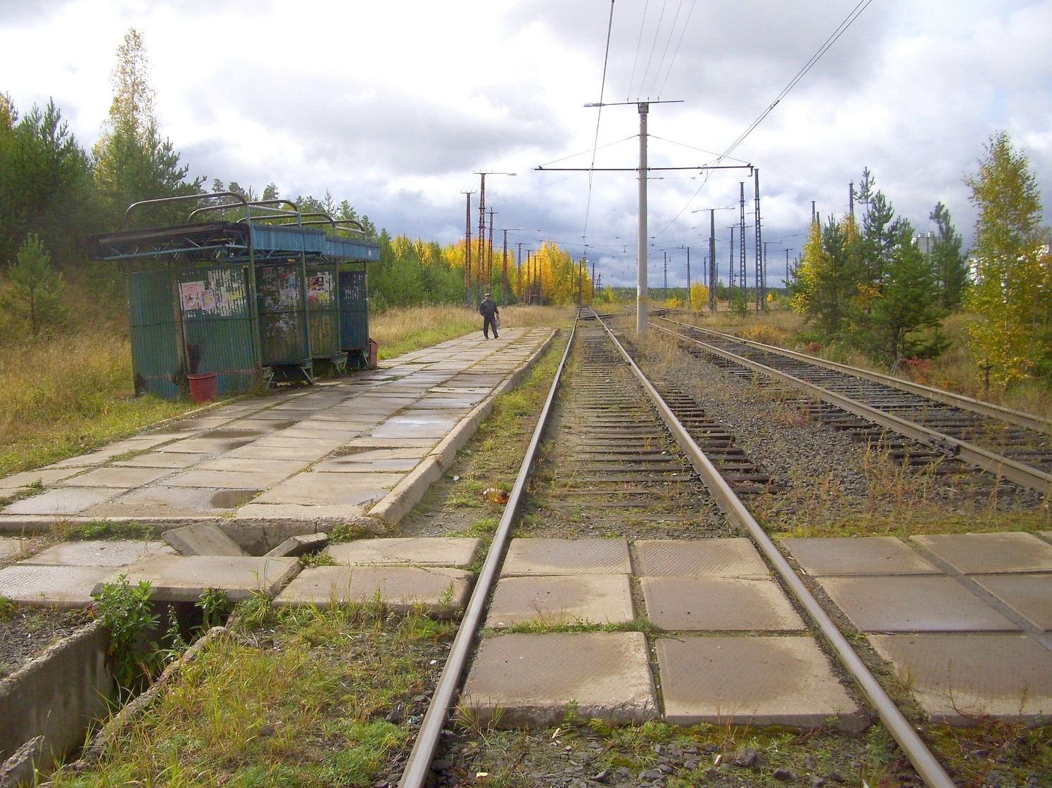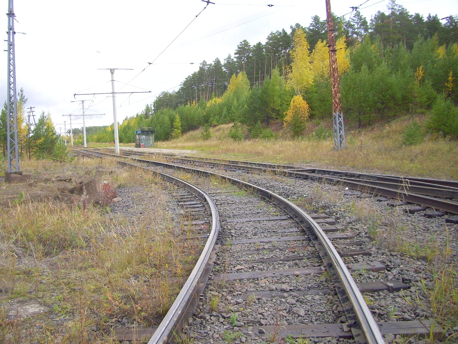 Впереди — станция «Целлюлозный завод». Вид в южном направлении.