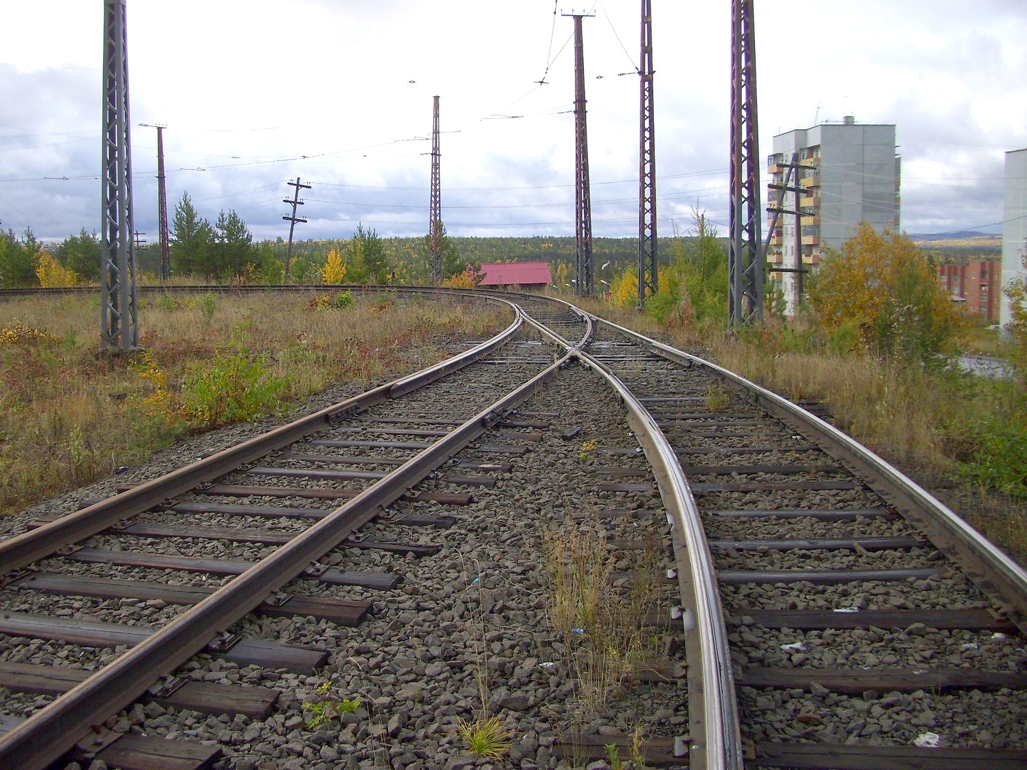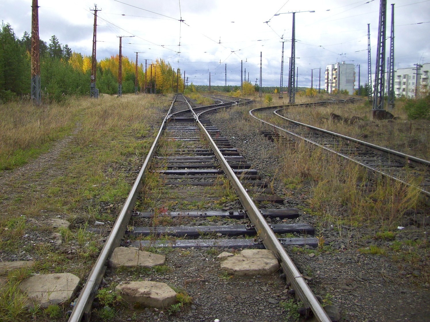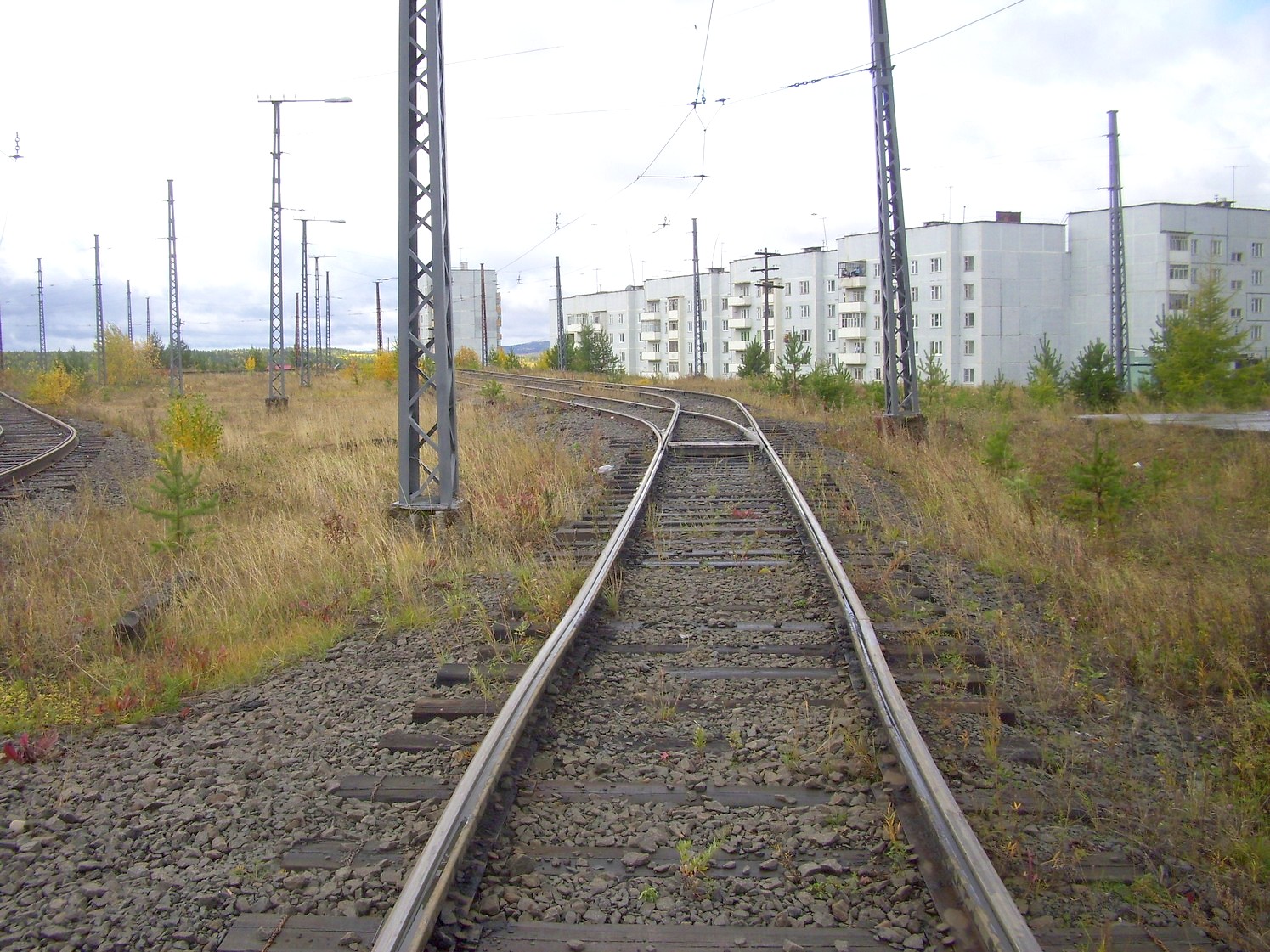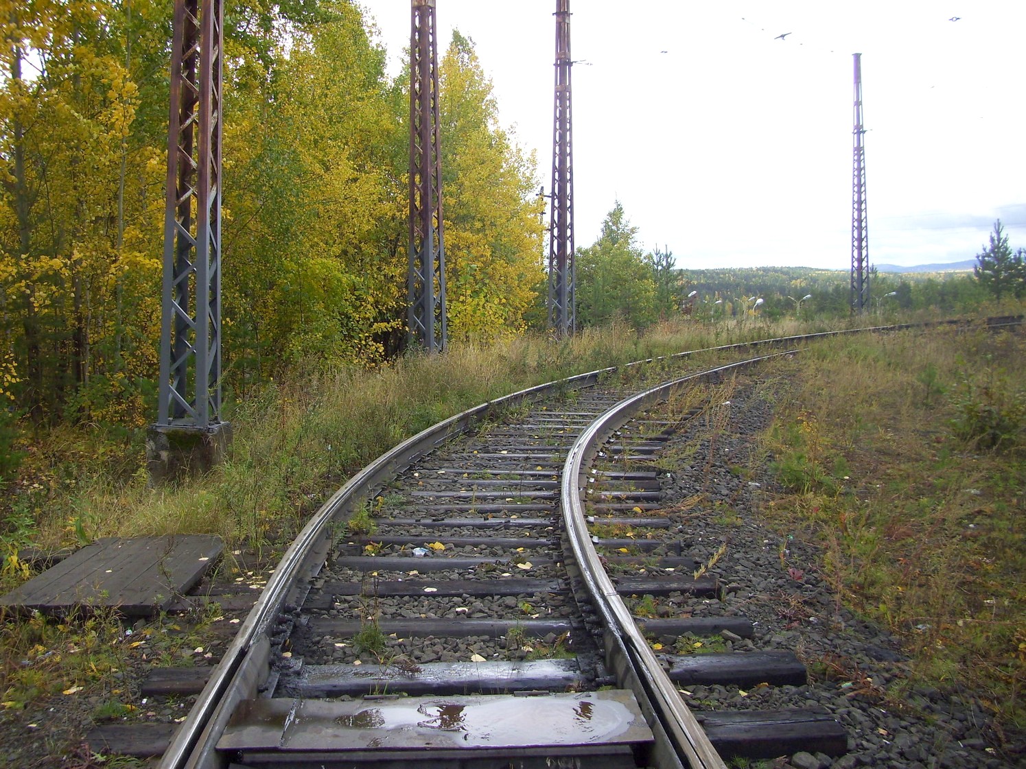 Впереди — станция «Целлюлозный завод». Вид в южном направлении.