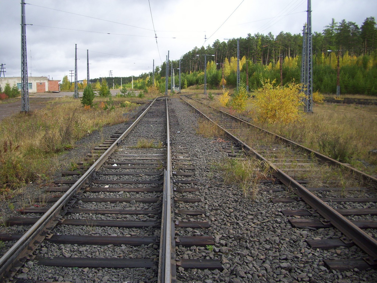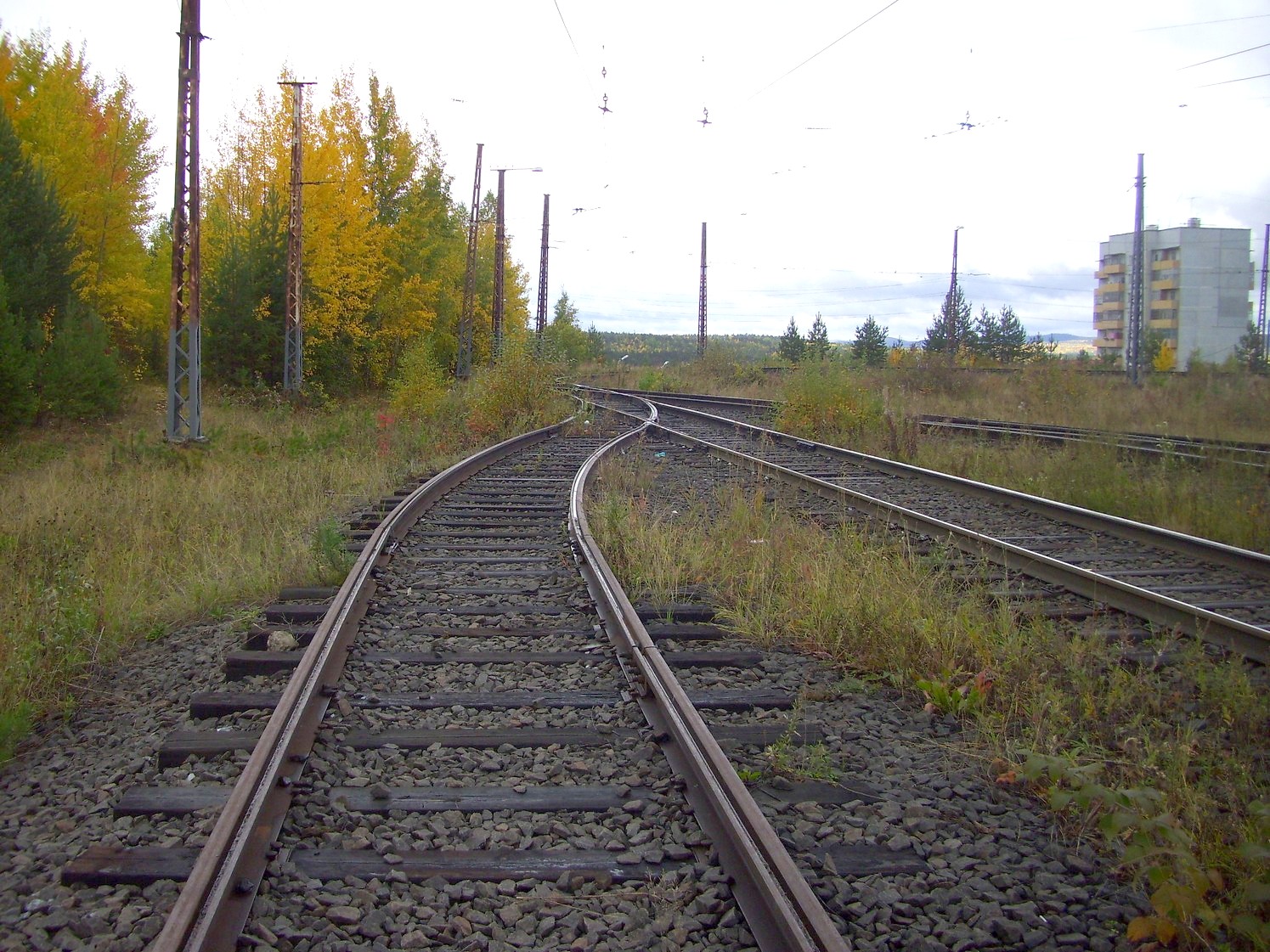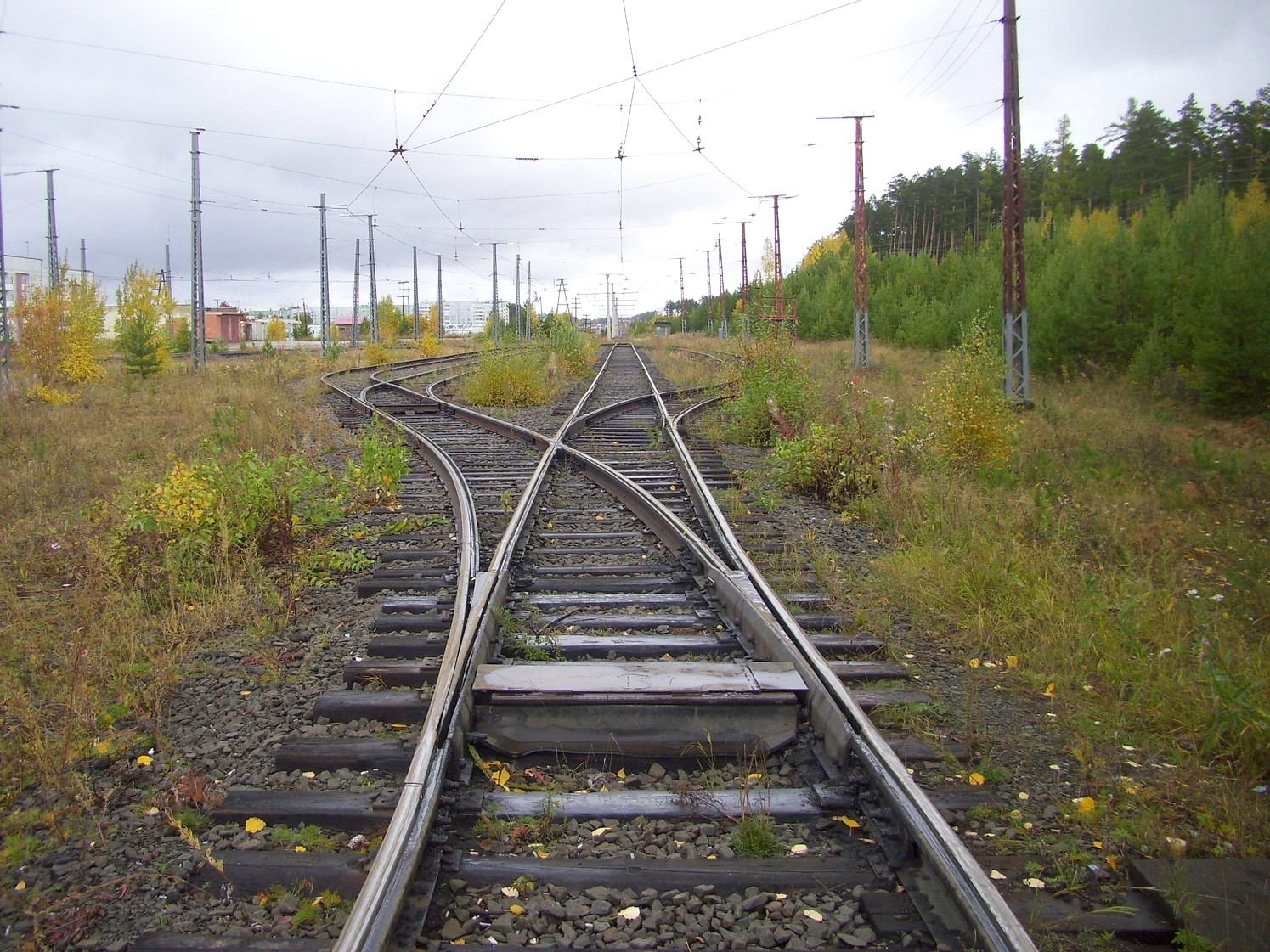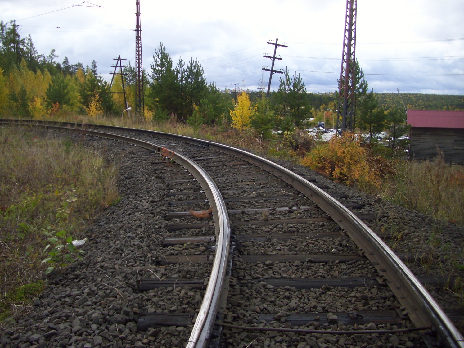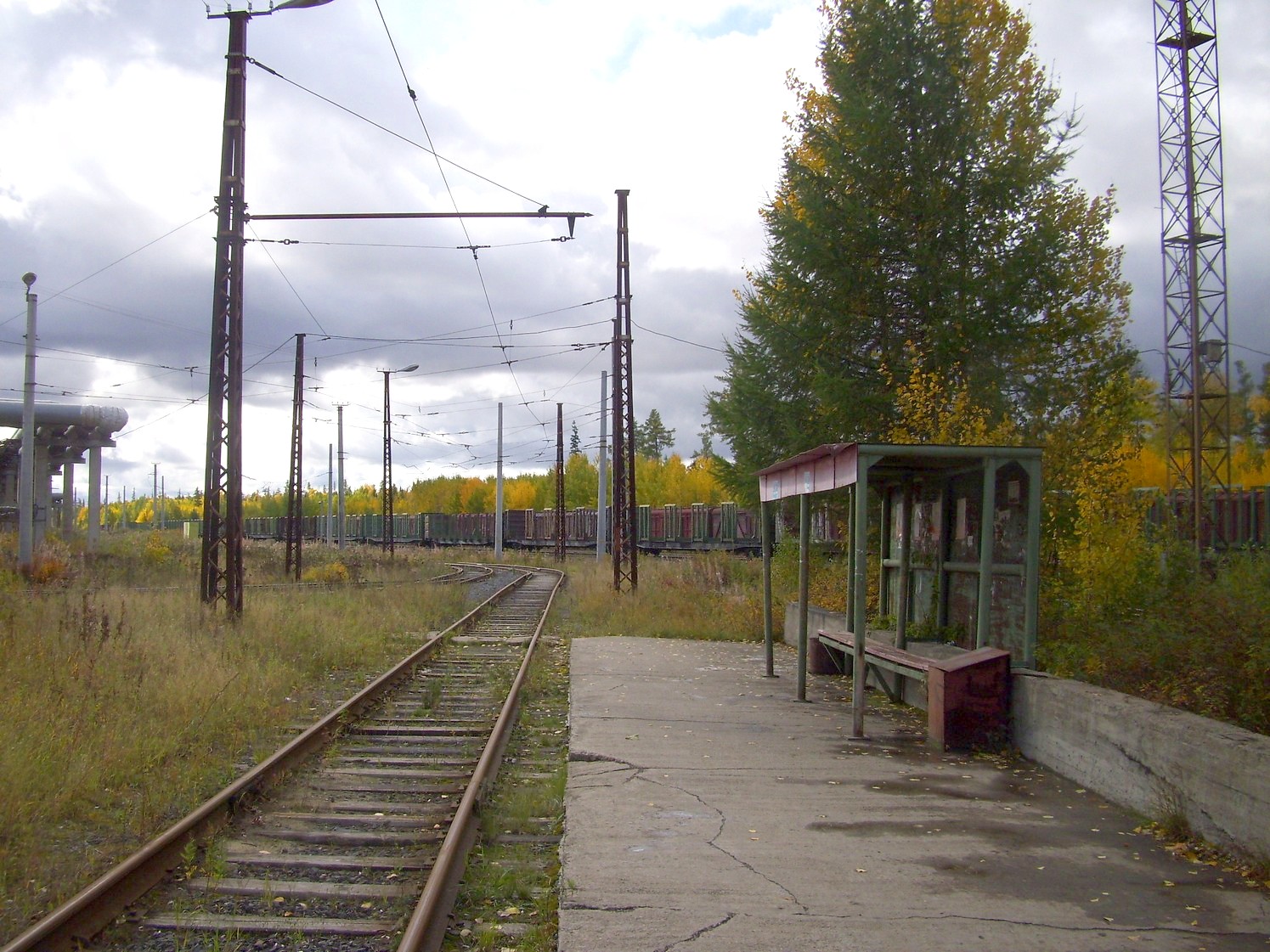 Впереди — станция «Целлюлозный завод». Вид в южном направлении.