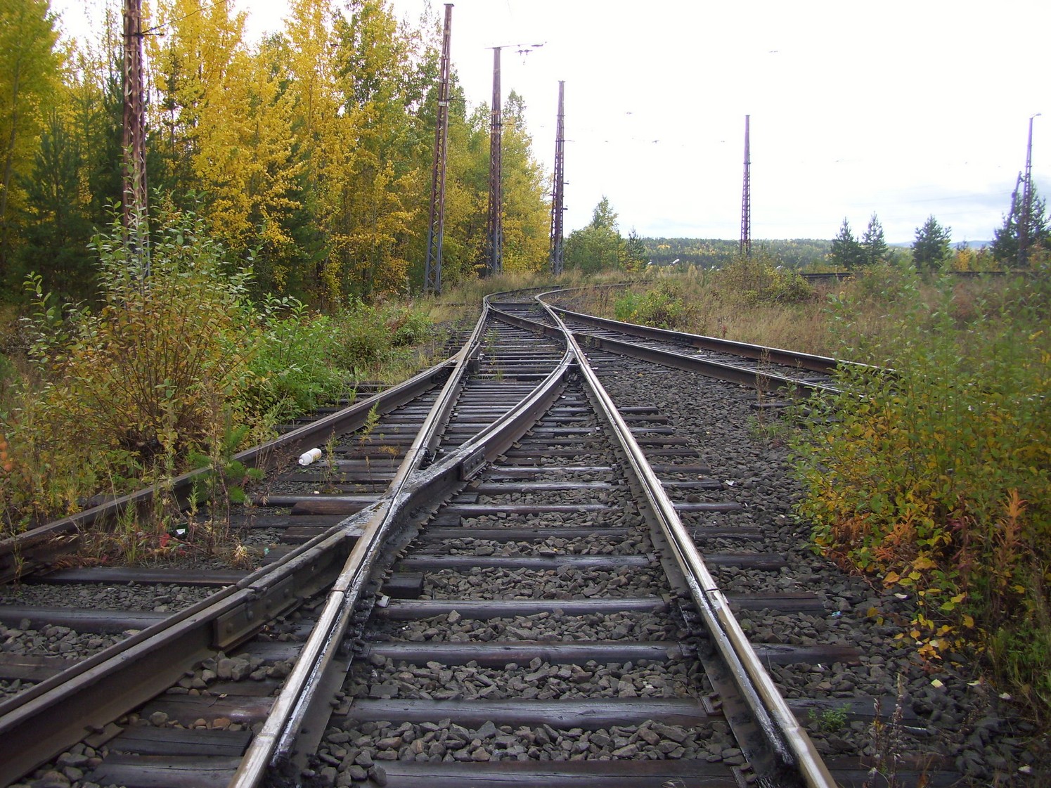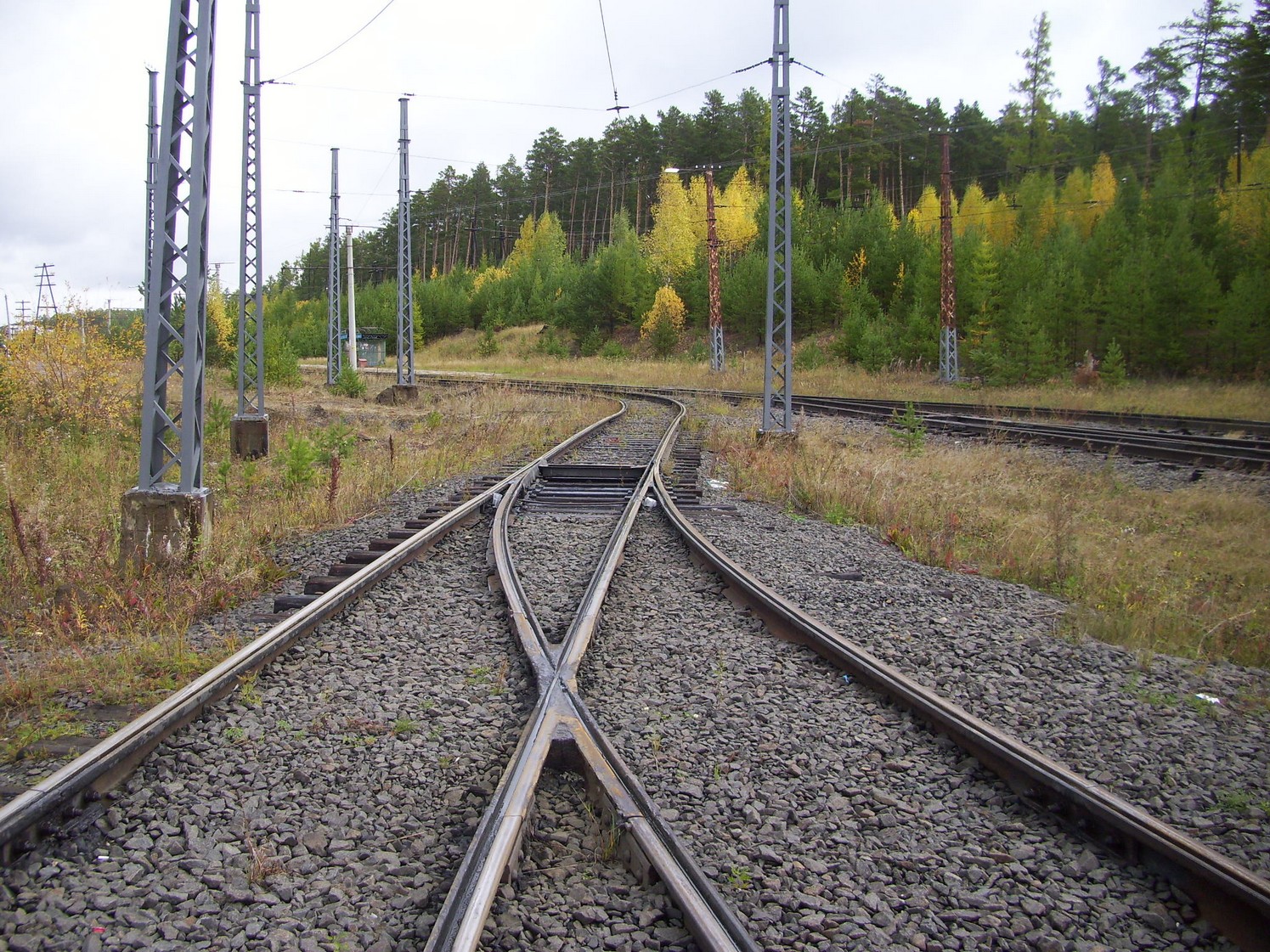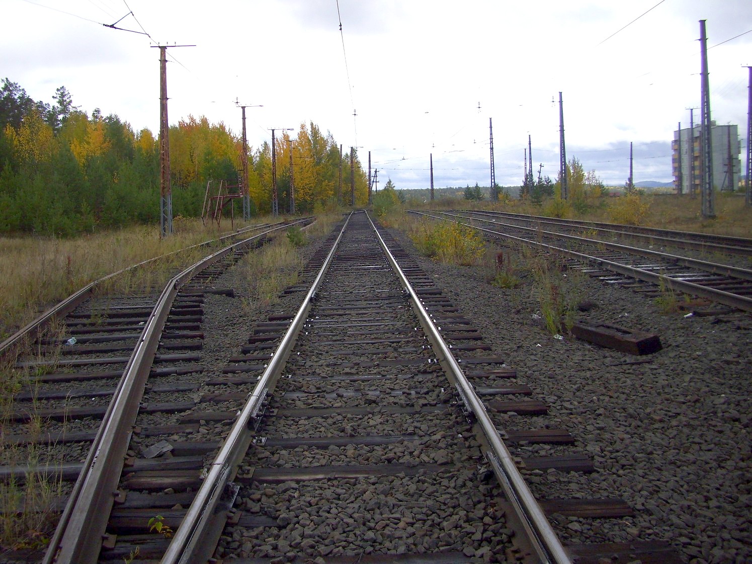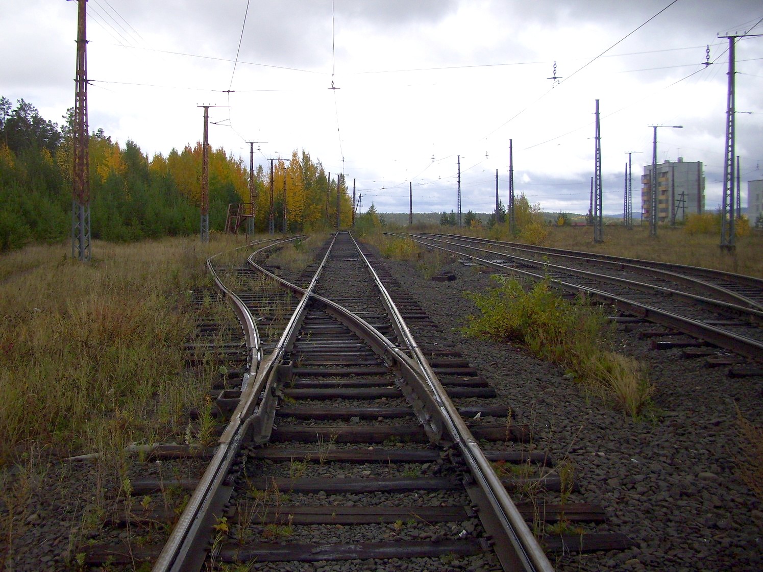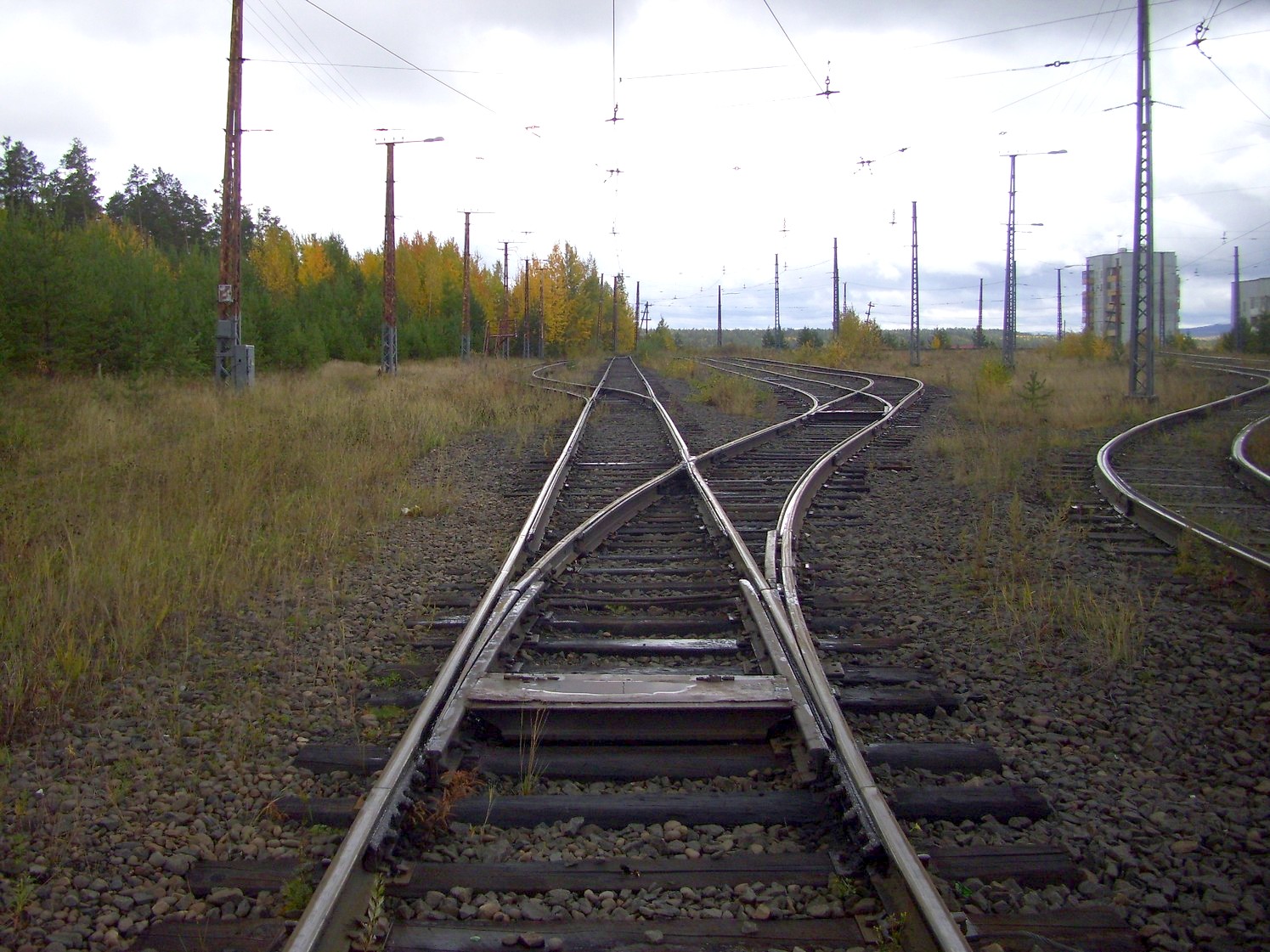 Впереди — станция «Целлюлозный завод». Вид в южном направлении.