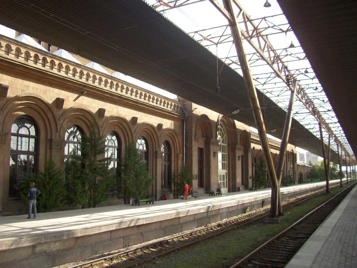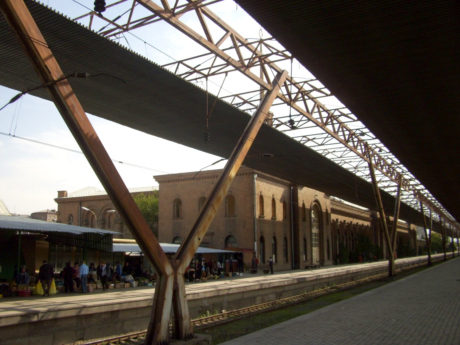 Станция Ереван. Вид от второй платформы в северном направлении. Ржавые рельсы закончатся