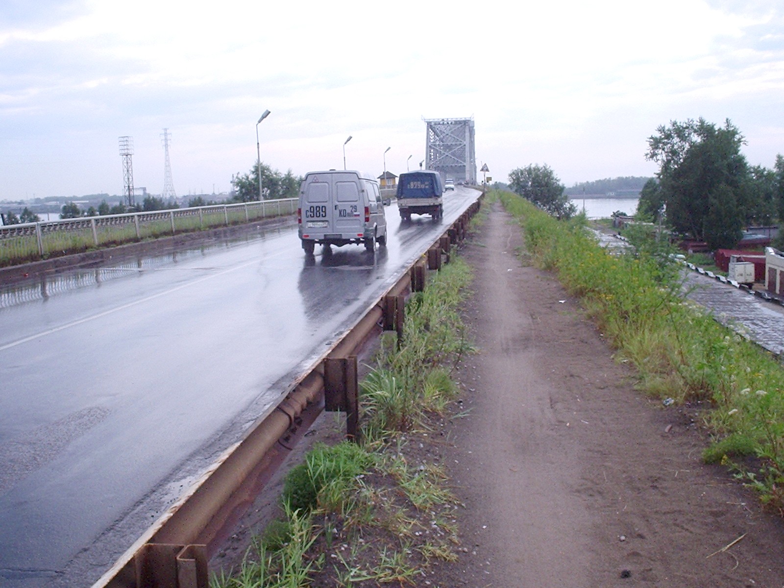 Мост через реку Северная Двина в г. Архангельске (перегон Архангельск-Город - Бакарица). Вид с правого берега.