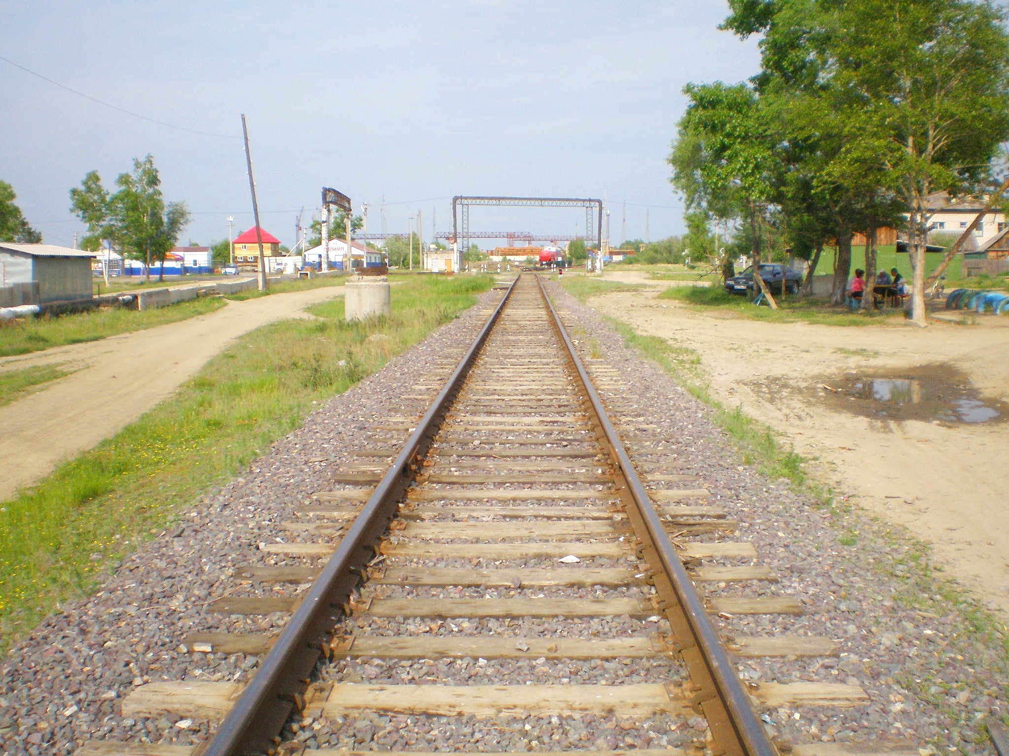 Подъездной путь, связывающей территорию Аурского шпалопропиточного завода со станцией Аур. Вид в сторону станции Аур.