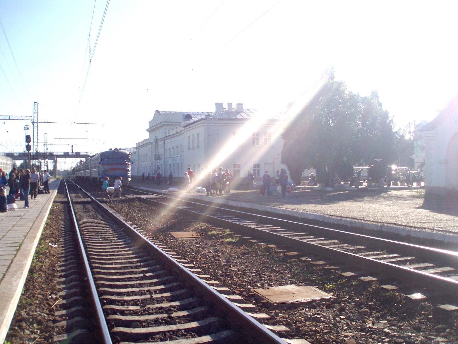 Станция Стрый. Вид со второй платформы в южном направлении. На станцию прибывает