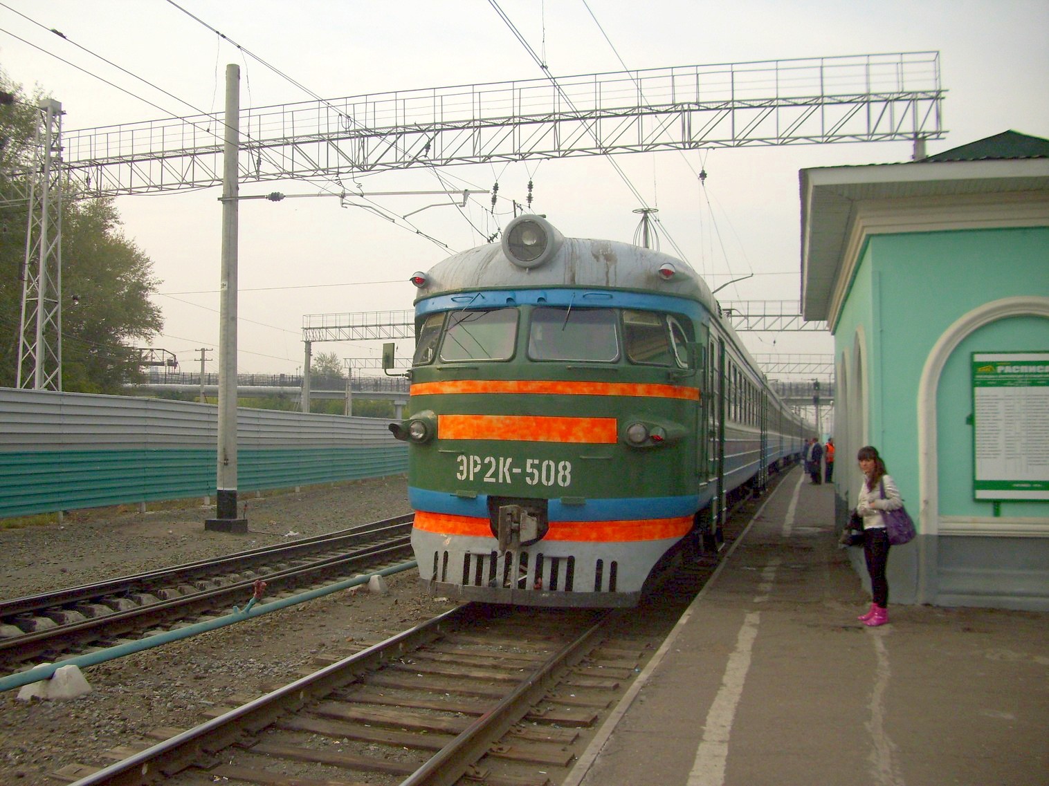 Электропоезд ЭР2К-508 на станции Омск-Пассажирский.