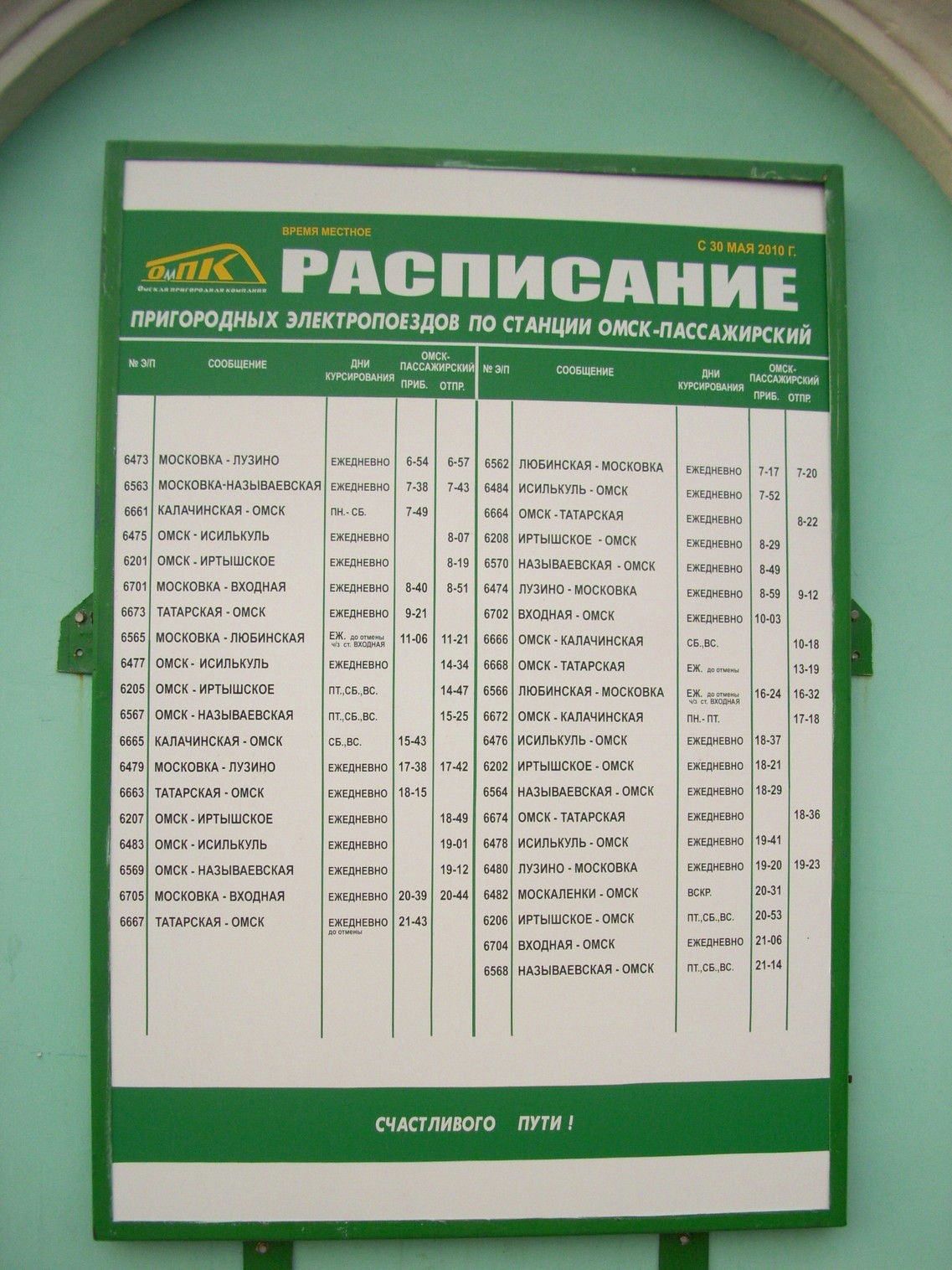 Расписание движения пригородных поездов по станции Омск-Пассажирский.
