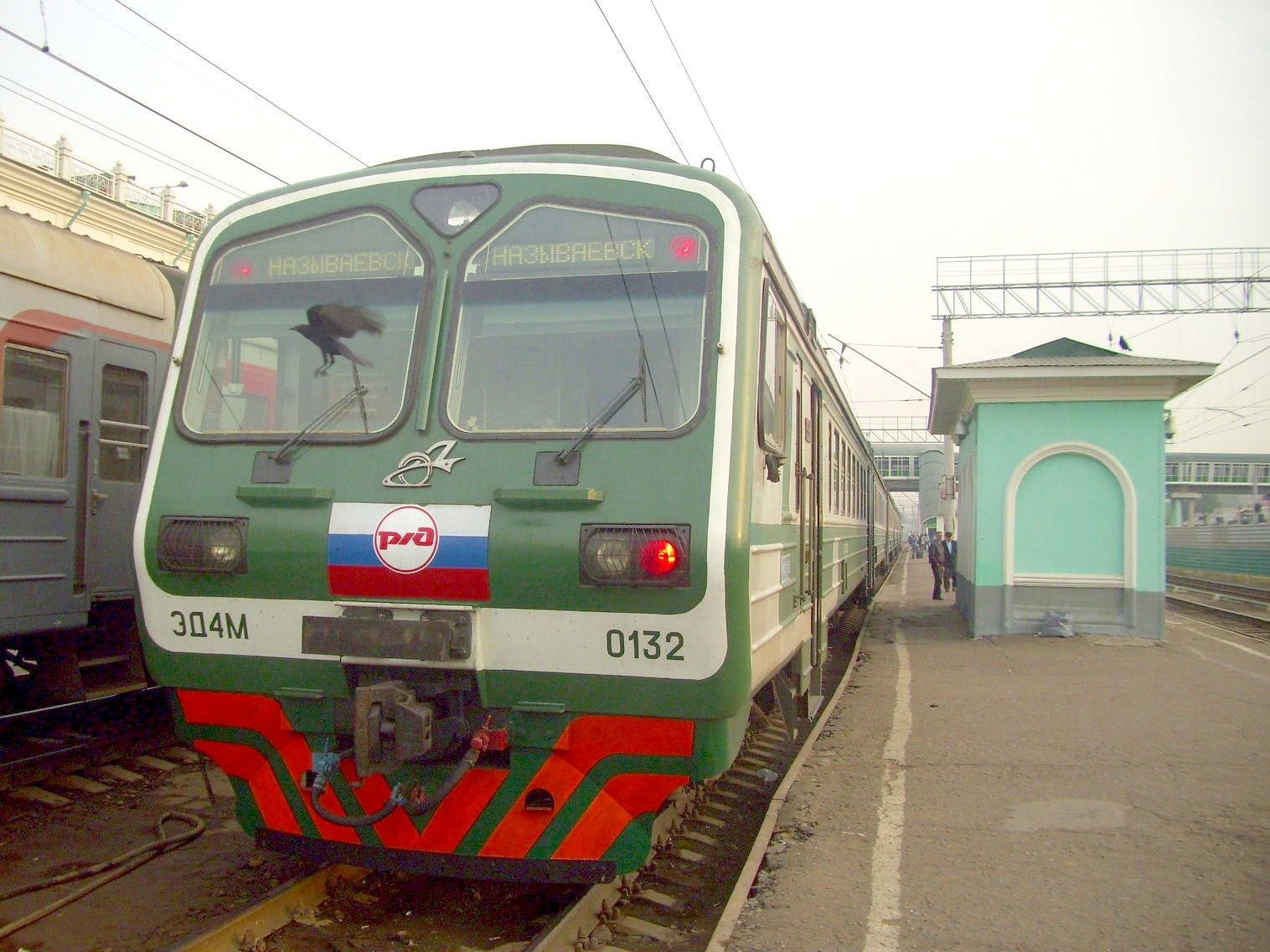 Электропоезд ЭД4М-0132 на станции Омск-Пассажирский.
