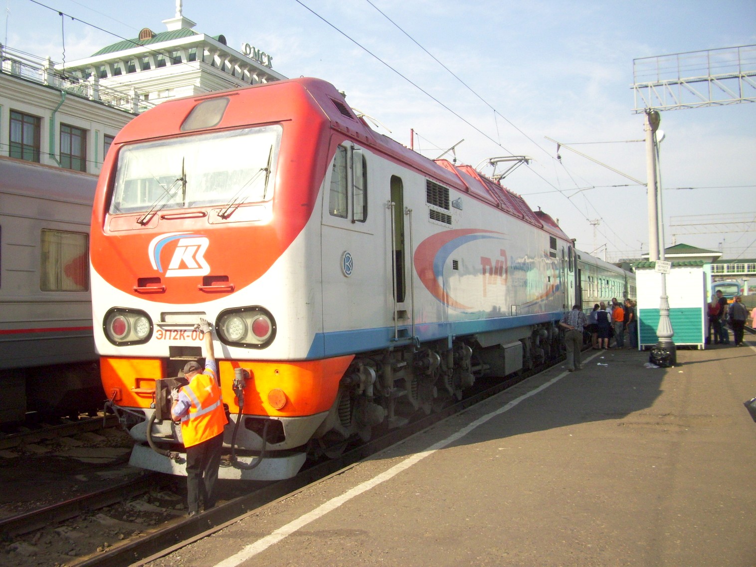 Станция Омск-Пассажирский. Электровоз ЭП2К с поездом Омск — Рубцовск.