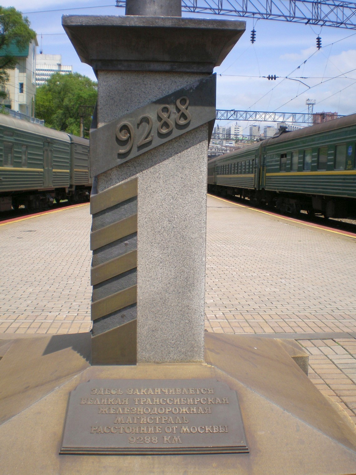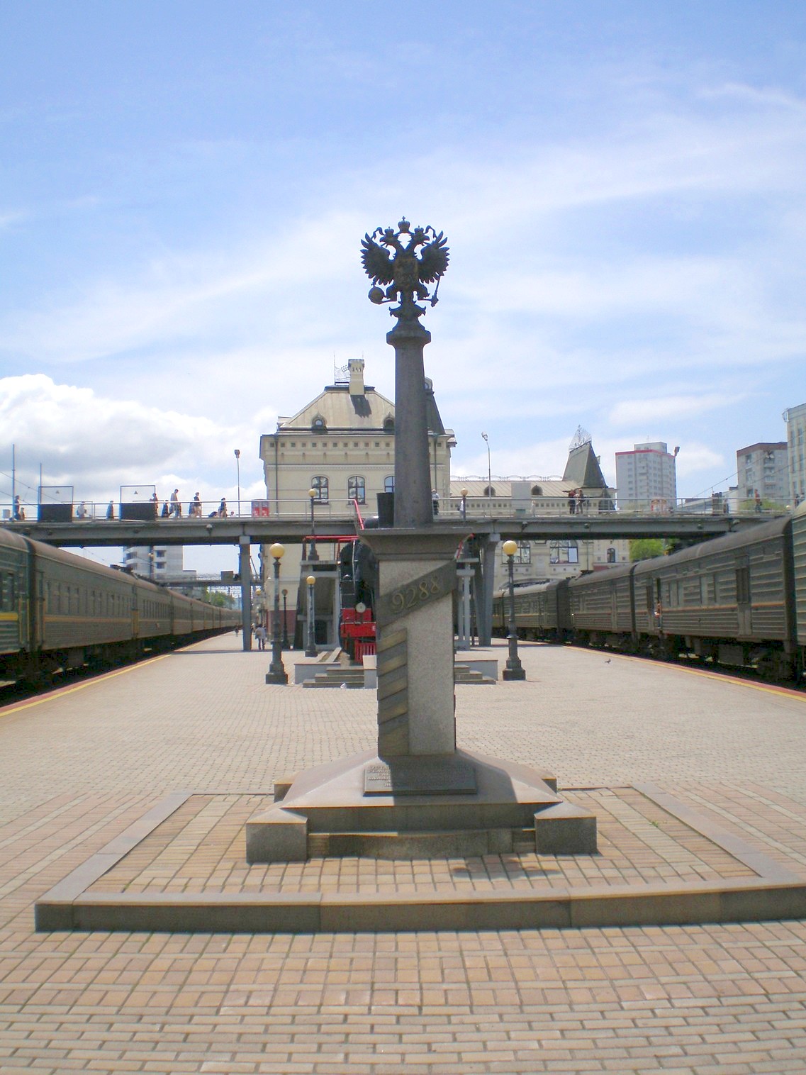 Станция Владивосток. Вид в южном направлении. Памятник, символизирующий окончание