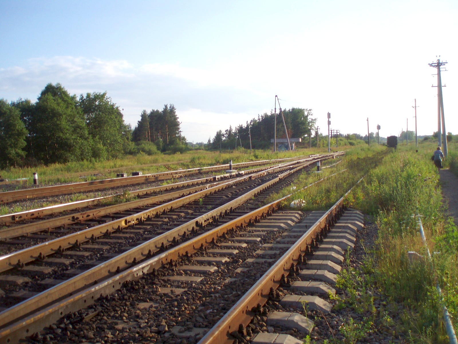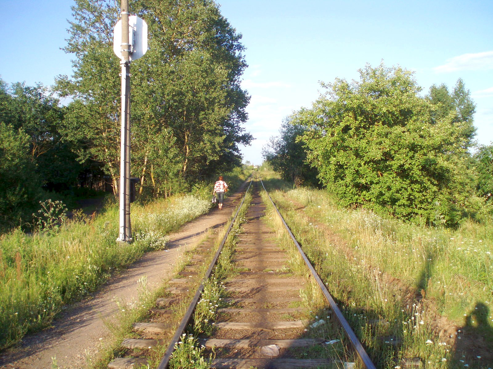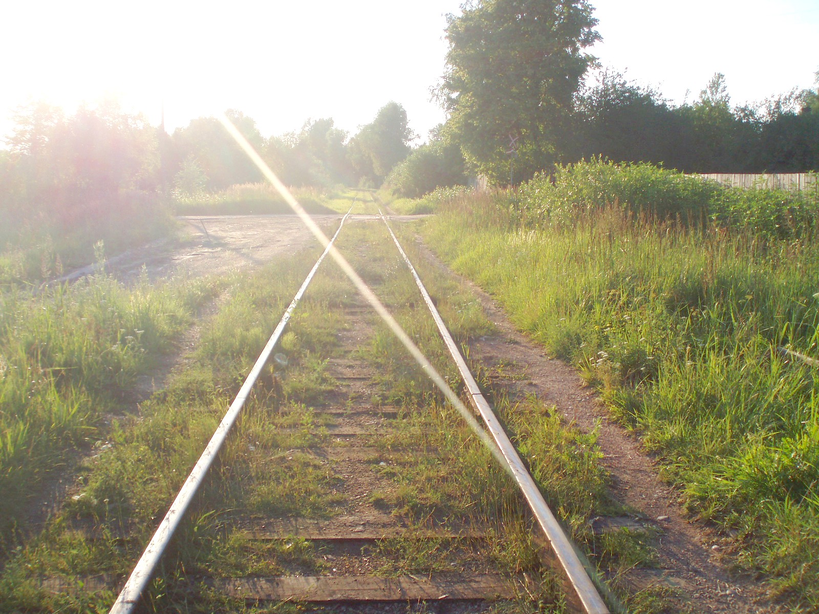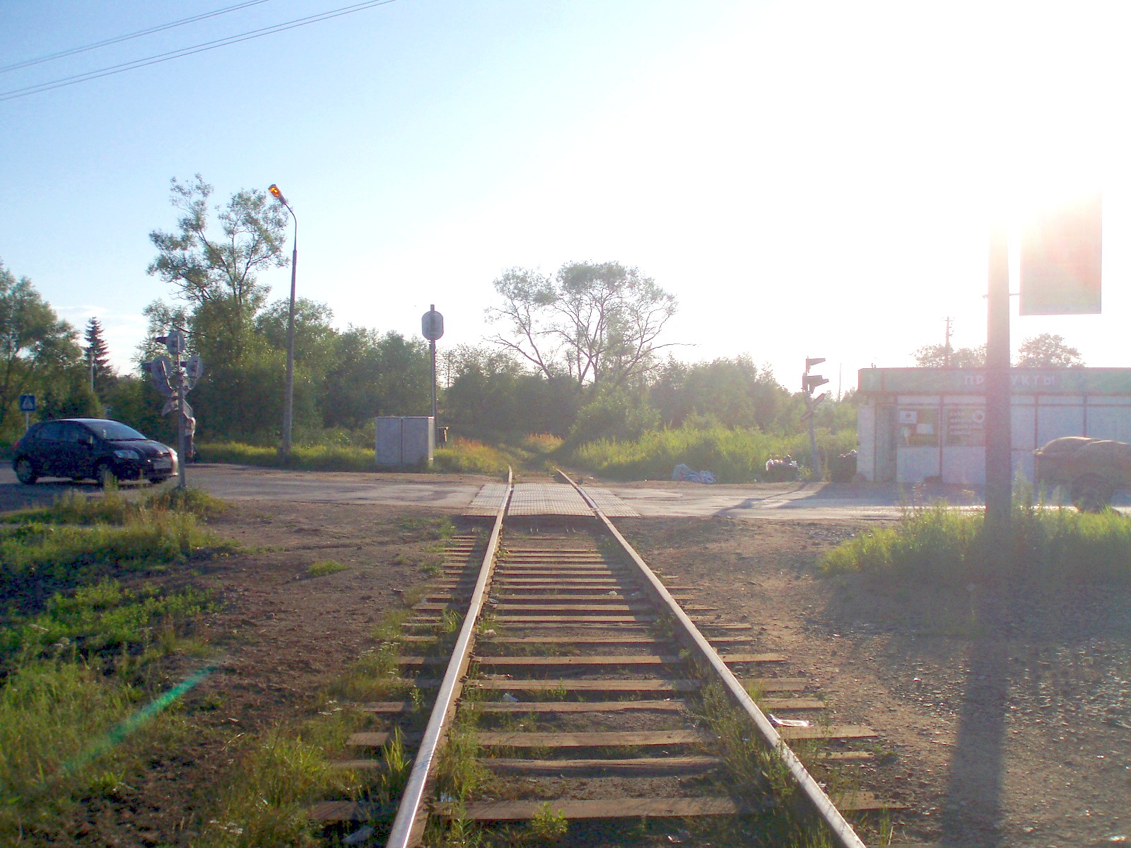 Вид из той же точки в противоположном направлении, в сторону станции Черёха. Впереди — переезд.