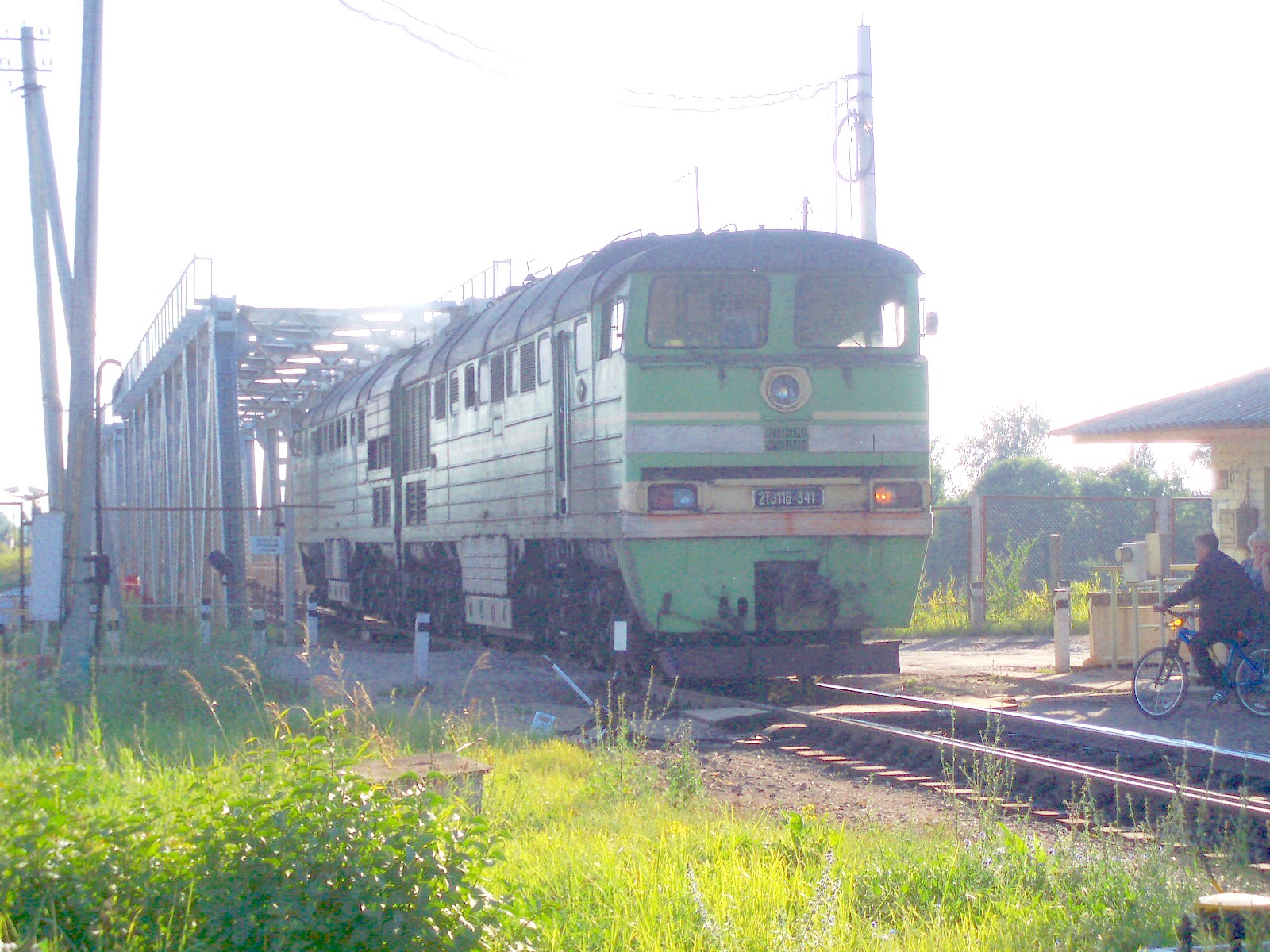 Тепловоз 2ТЭ116-341 следует по мосту через реку Великая.