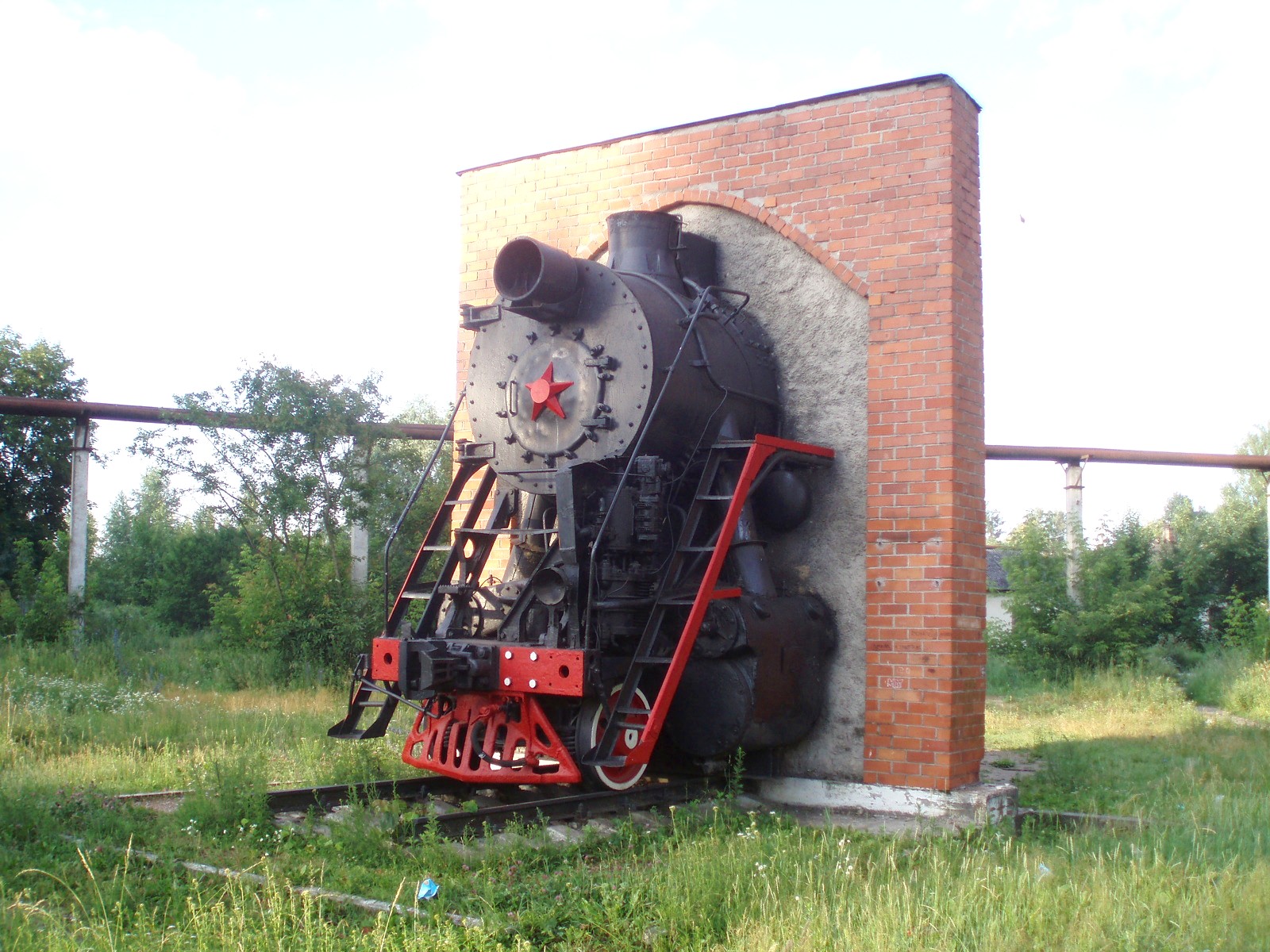 Паровоз-памятник Эм-728-23 на станции Дно.