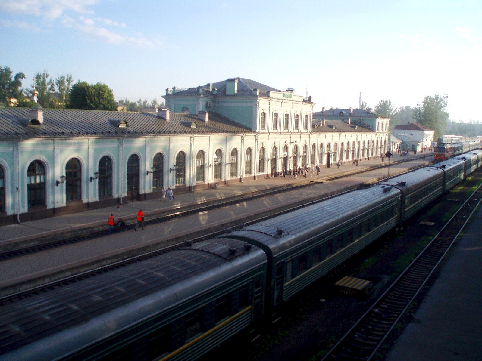 Вокзал на станции Псков. Вид с переходного моста.