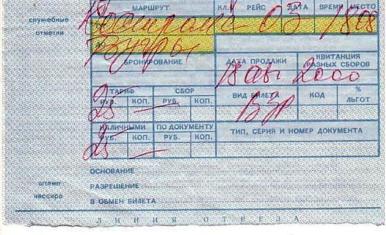 Возвращение из рабочей экспедиции (путь от Москвы до Тюмени пройден наземными видами транспорта). Стоимость перелёта 500 рублей. _________________________________________________________________________________________