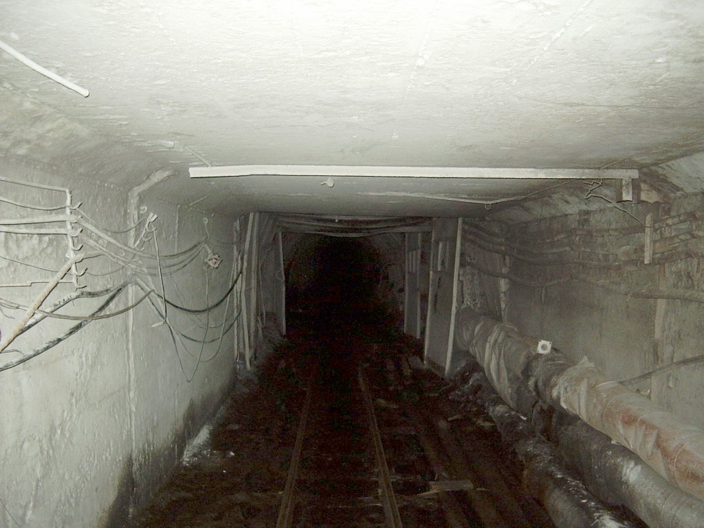 Участок галереи севернее лесцеха. Прямой участок, по направлению к переезду. Видна стрелка на склад инертной пыли.