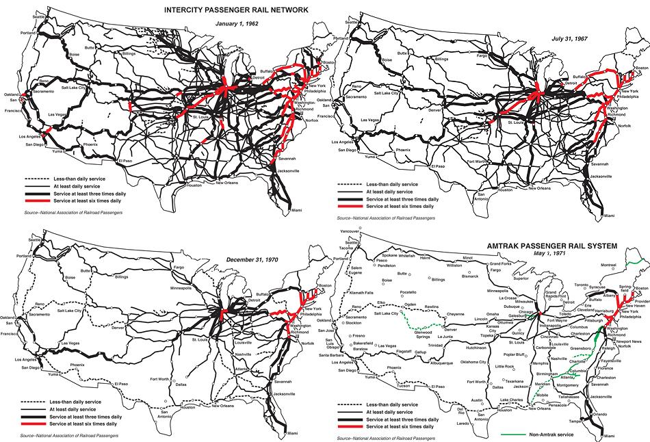 Печальная хронология ликвидации пассажирского железнодорожного сообщения в США. 1962-1971 годы.