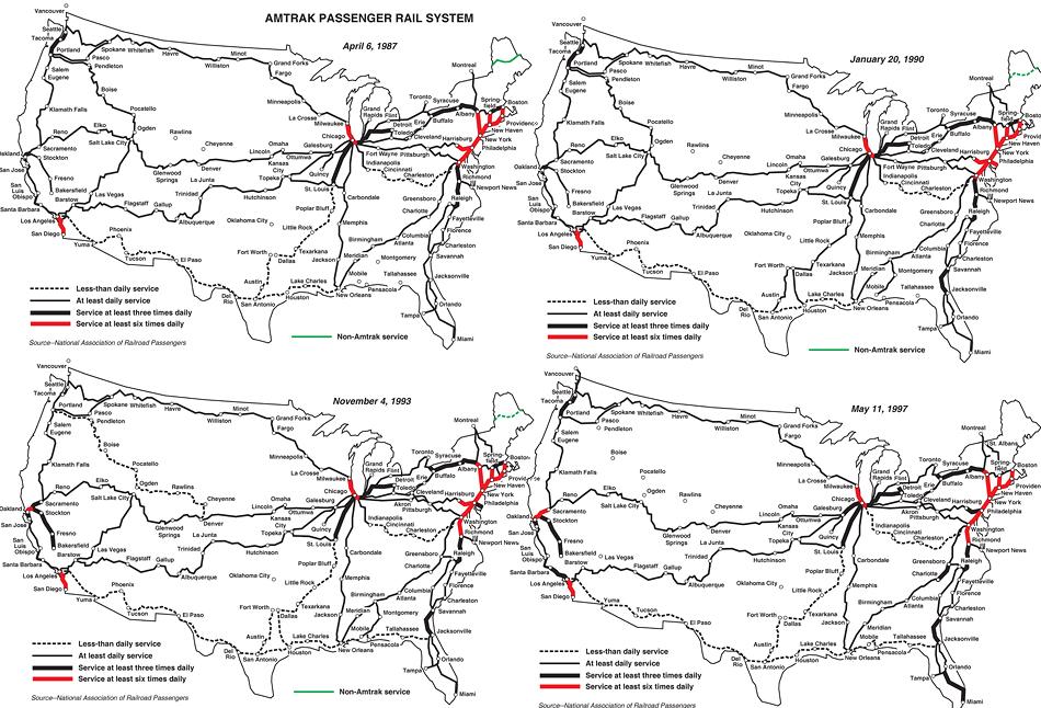 Печальная хронология ликвидации пассажирского железнодорожного сообщения в США. 1987-1997 годы.