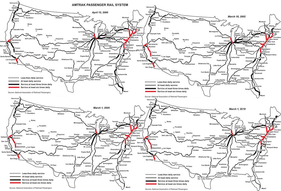 Печальная хронология ликвидации пассажирского железнодорожного сообщения в США. 2000-2019 годы.