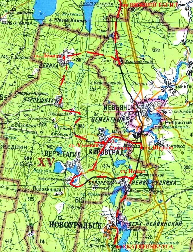 Выхожу на автодорогу, расположенную рядом с окраиной Монетного, вскоре останавливается машина до Екатеринбурга. Здесь уже было темно. Основная задача — получить достоверные сведения о движении поездов по железной дороге на Красный. От разных жителей Свердловской области (в основном от подвозивших водителей) я встречал противоречивые утверждения об этой железной дороге: кто-то говорил, что пассажирский поезд на Красное ходит с «Уралмаша», прямо с территории завода, кто-то — что он ходит от жилых районов.