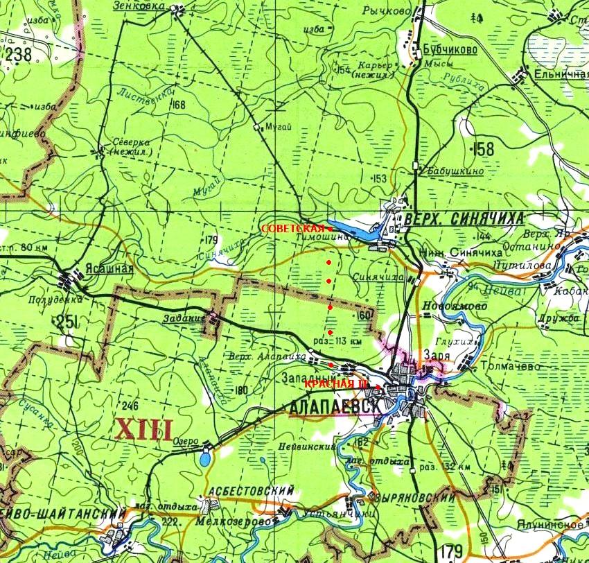 Вскоре после пригородного поезда в Алапаевск отправлялся ремонтный поезд, принадлежавший ПМС (путевой машинной станции). Путейцы согласились провезти в путевой машине. Поздним вечером прибываем в Алапаевск. Раскладываю спальный мешок недалеко от вокзала — благо, алапаевский вокзал оторван от городской застройки, рядом с ним находятся заросшие густым кустарником берега небольшой реки Алапаихи.