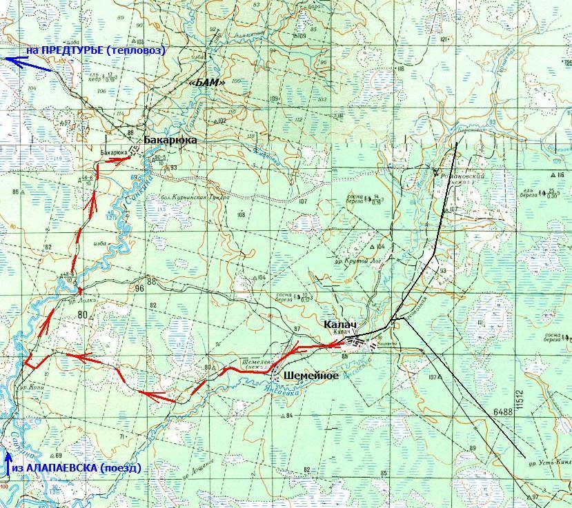 Юные пассажиры были не агрессивны, но «доставали» меня глупейшими вопросами о цели поездки. Стали рассматривать при свете карманного фонарика мою карту-«пятикилометровку» Свердловской области. Немного беспокоюсь: в случае утраты этой карты поездка бы осложнилась, а переход из Калача в Бакарюку стал бы невозможен. К счастью, обошлось без эксцессов.