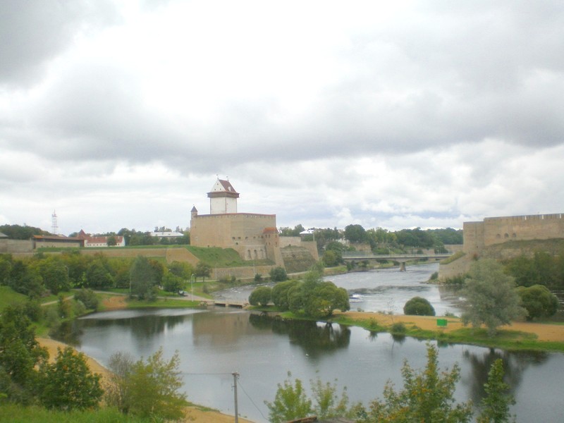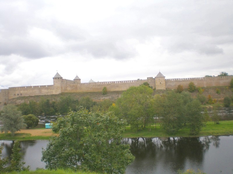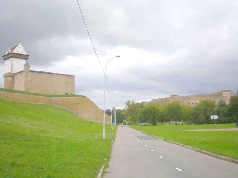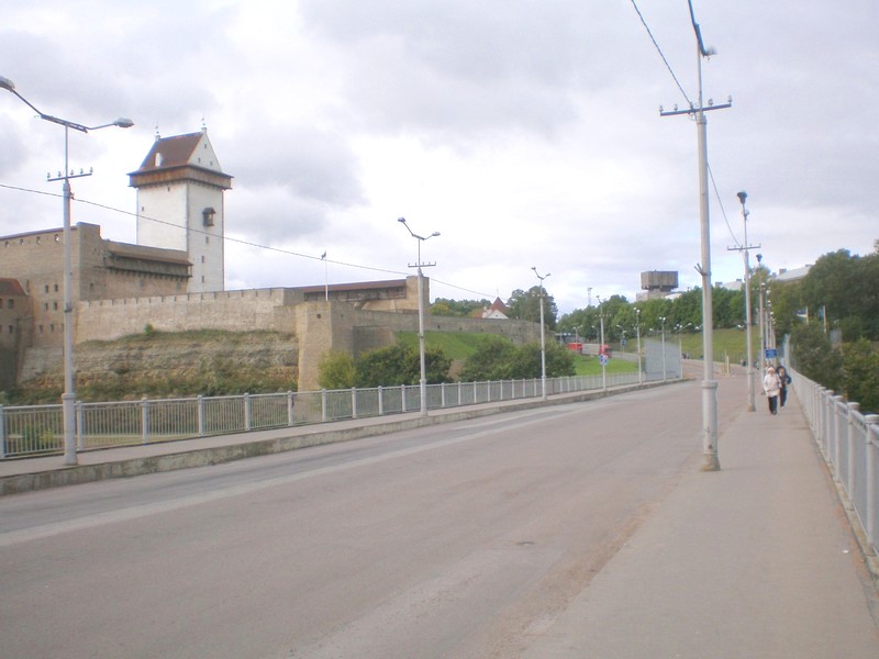 Преодолев пункт пропуска, я пошёл вдоль берега реки Нарвы. Рассматриваю Ивангородскую крепость с нарвского берега. Пользуюсь мобильной связью. Здесь, на границе, это ещё возможно. Через несколько километров дальше станет невозможно — мой телефон действует только в России.
