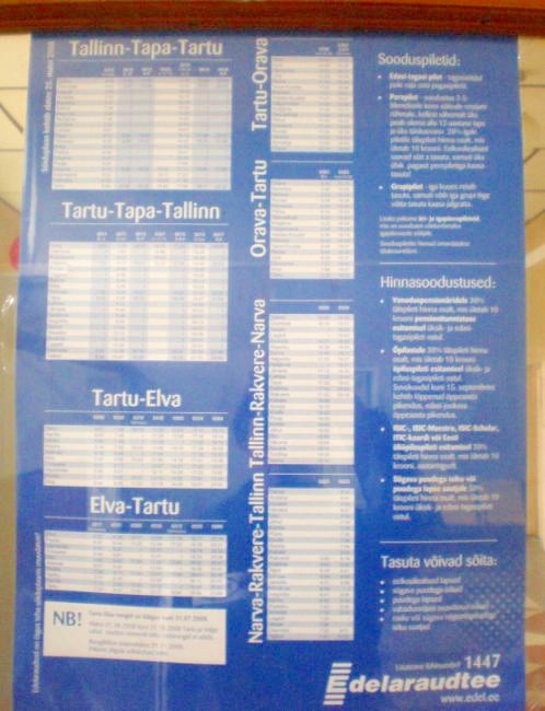 Приятной неожиданностью оказался тот факт, что в Таллине, как и в Нарве, значительная часть информации дублируется по-русски. Даже вывешенные в вагонах электропоездов правила проезда и предупреждения для «безбилетников» — двуязычные. Однако расписание движения поездов ни на какие языки не дублируется. В днях следования поездов, курсирующих не ежедневно, разобраться непросто.
