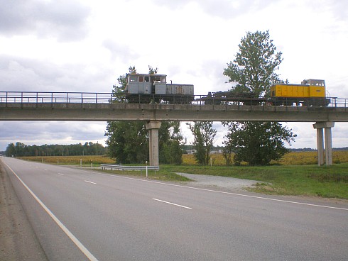 Водитель с интересом отнёсся к моей деятельности по изучению железных дорог. Предлагал остановиться для фотографирования у путепровода узкоколейной железной дороги. Но я уже сделал немало его фотографий при поездке на тепловозе. Ограничиваюсь фотографией, сделанной непосредственно из автомобиля.