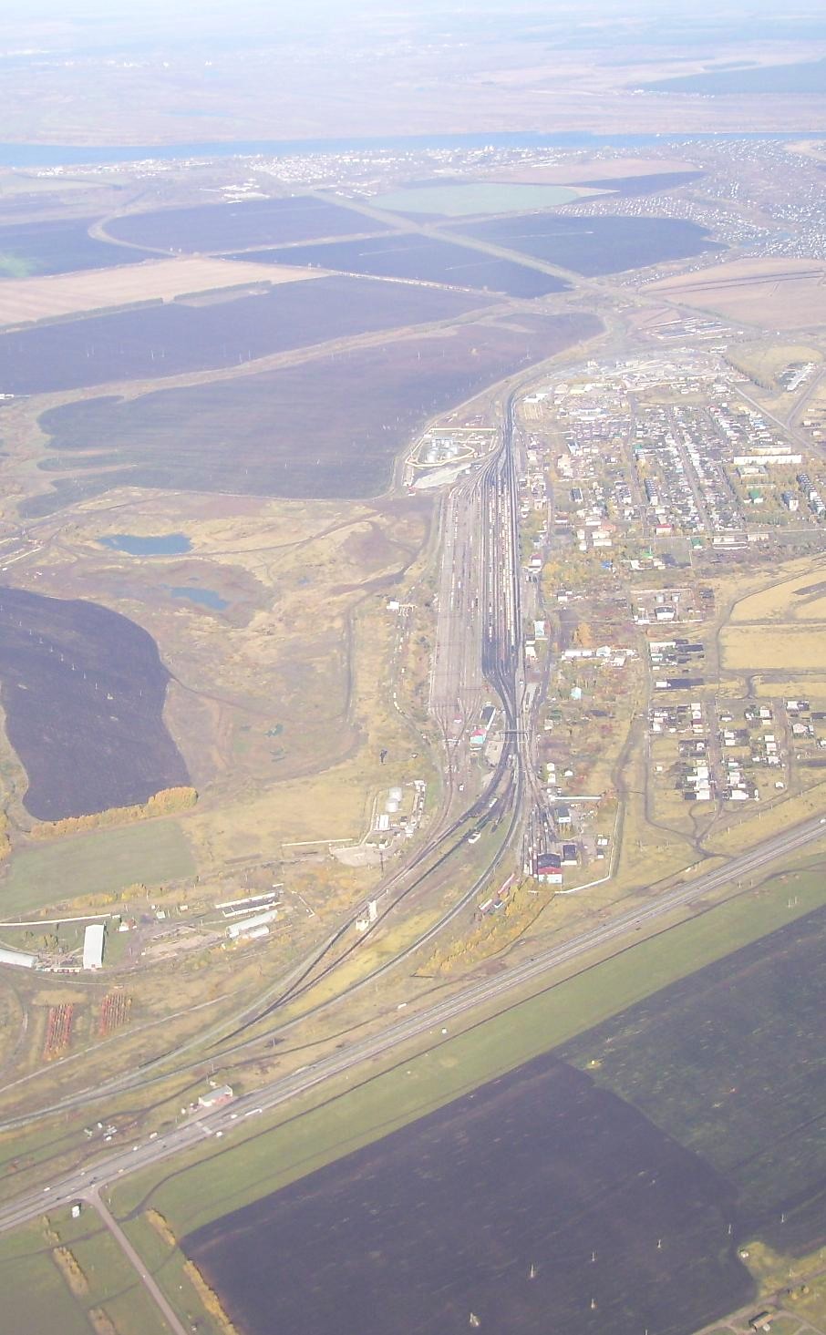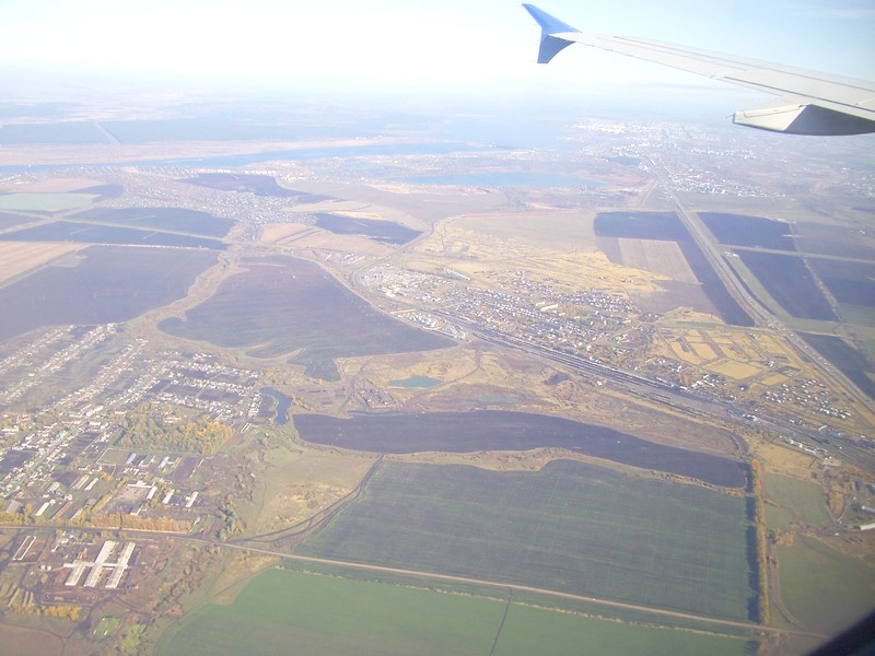 Погода на подходе к Набережным Челнам была безоблачной. Это позволило сфотографировать город и крупную грузовую станцию Круглое Поле, обслуживающую КамАЗ и другие предприятия города.