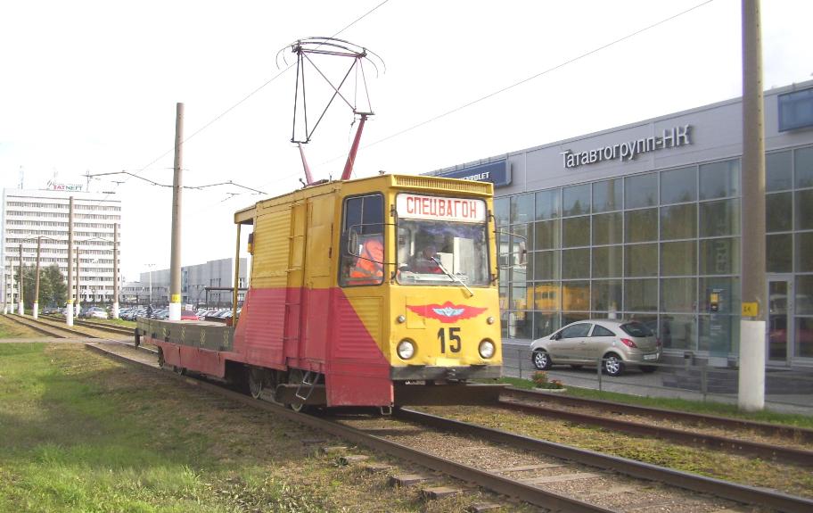 Нижнекамский трамвай. Служебный вагон вблизи конечной станции «Шинный завод».
