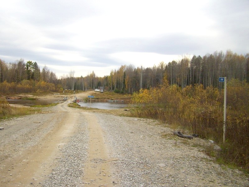 Автодорога Чердынь — Чепец. Понтонный мост через реку Кельтма. За мостом находится КПП.