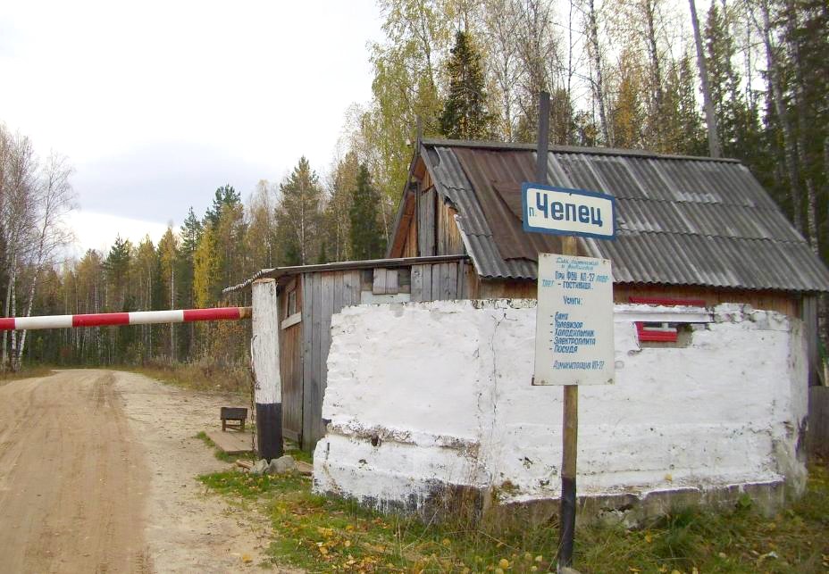 КПП на въезде в Чепец. Дежурный по КПП является заключённым, внимательно проверяет всех въезжающих и выезжающих.