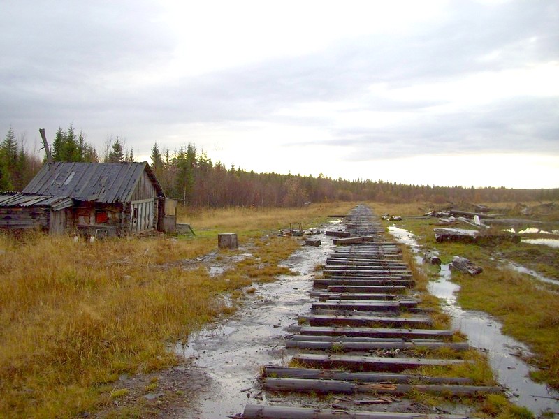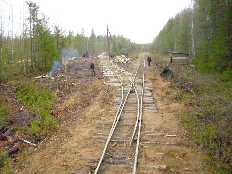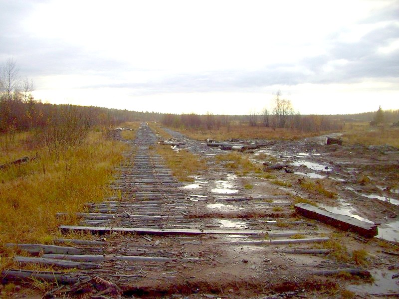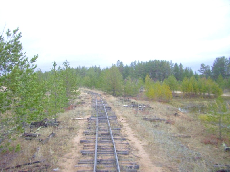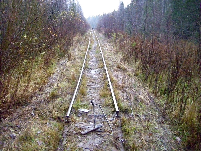 44 километр. Здесь узкоколейная железная дорога заканчивается. Вид в сторону Озёрной.