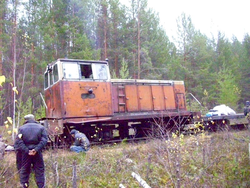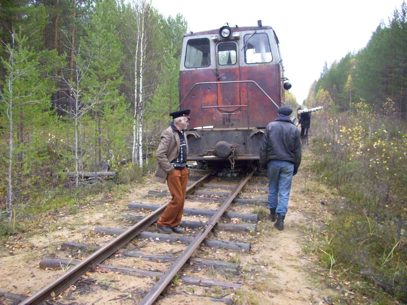 «Забур». Под тепловоз подложат брёвна, приподнимут.