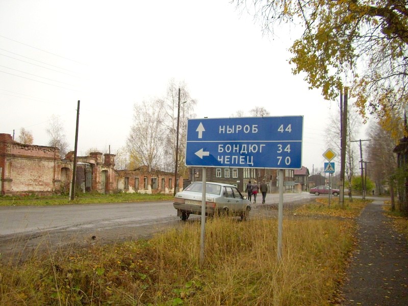 Часть пути от Бондюга до Чепца меня подвёз на автомобиле «Нива» житель посёлка Ольховка. В Ольховке находится колония-поселение. Место это крайне отдалённое даже по сравнению с Чепцом. Автомобильной дороги до Ольховки нет, зимник действует только 3-4 месяца. Добираются в Ольховку следующим образом: на автомобиле до 23-го километра реки Южная Кельтма (отсчёт от устья), где построены гаражи, далее на моторной лодке или катере.