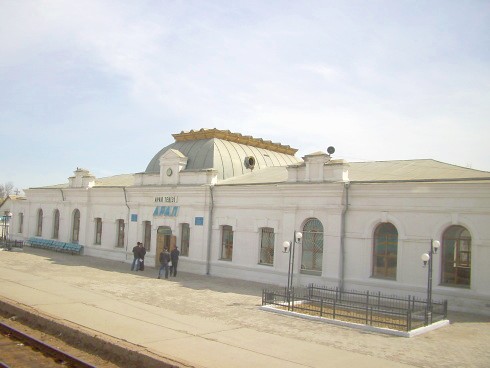 Вокзал на станции Тюратам — «ворота» города и космодрома Байконур.