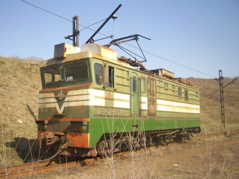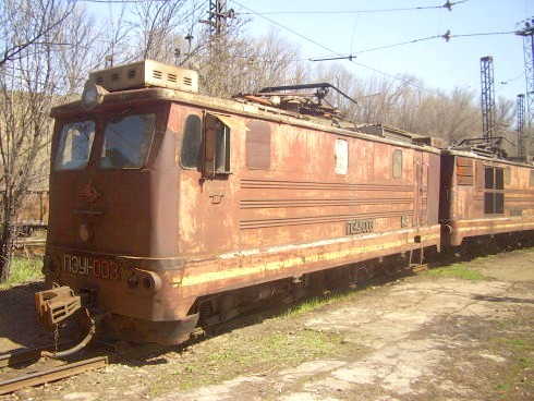 Электровоз ПЭУ2-001 в тупике. Здесь при следовании «сверху вниз»