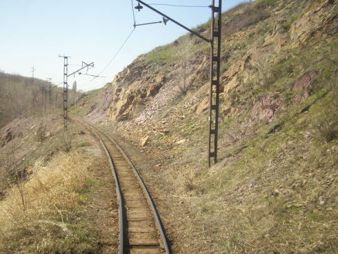 контактной сети на пути, ведущем наверх, к разгрузочным бункерам.