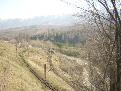 Коксу — Текели). Вид на восток. Железная дорога продолжается